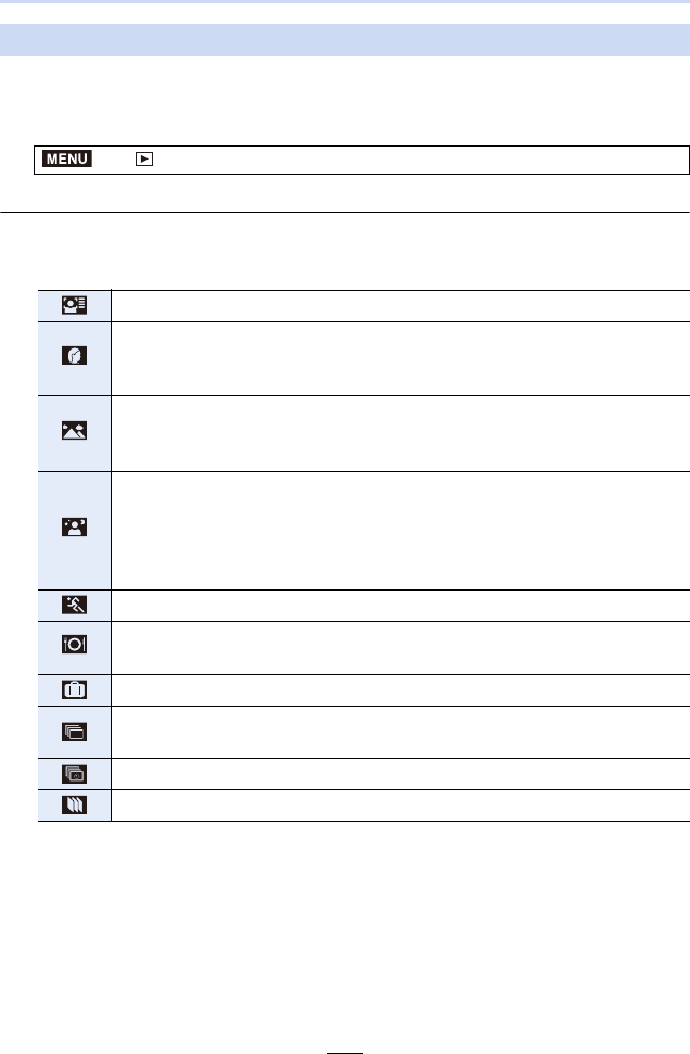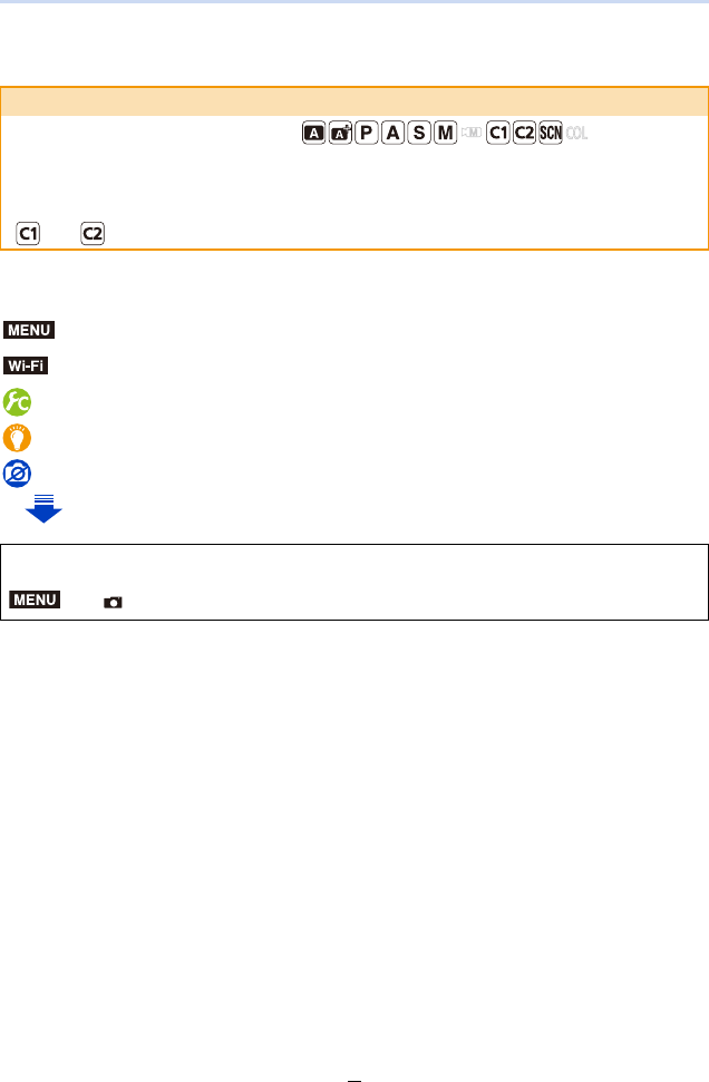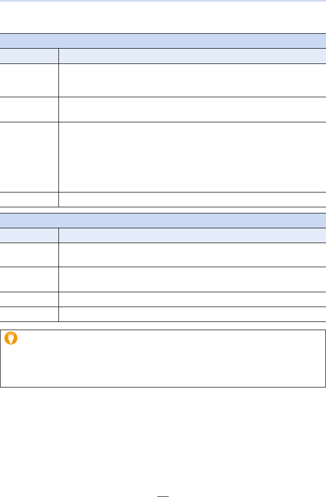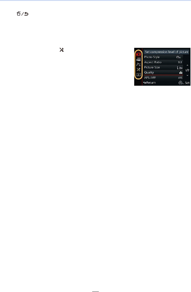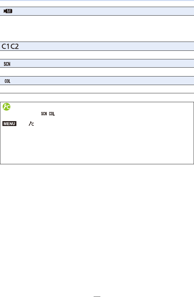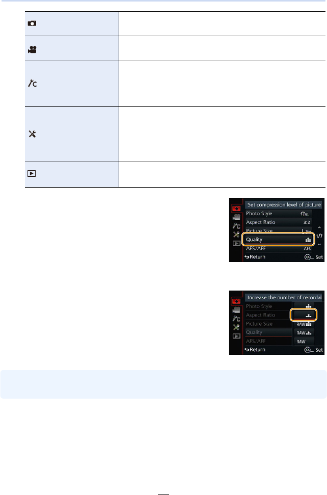 : Indicates how the menu can be set after pressing the [MENU/SET] button.