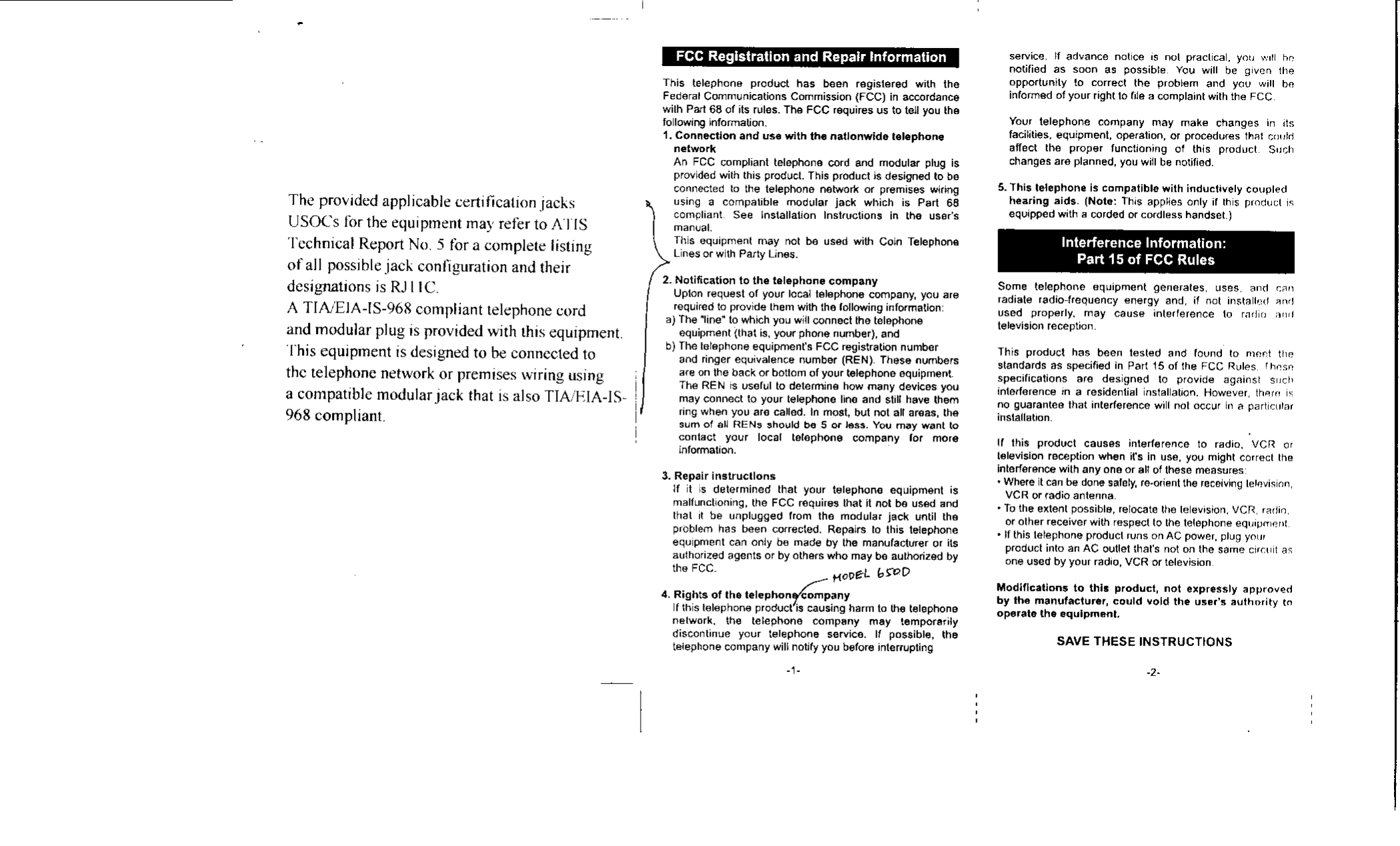 Lelux Electronics 650D 46/49 MHz 10 Channel analog Modulation Cordless Ph User Manual FCC information