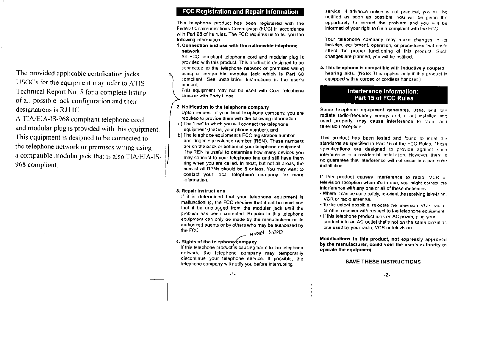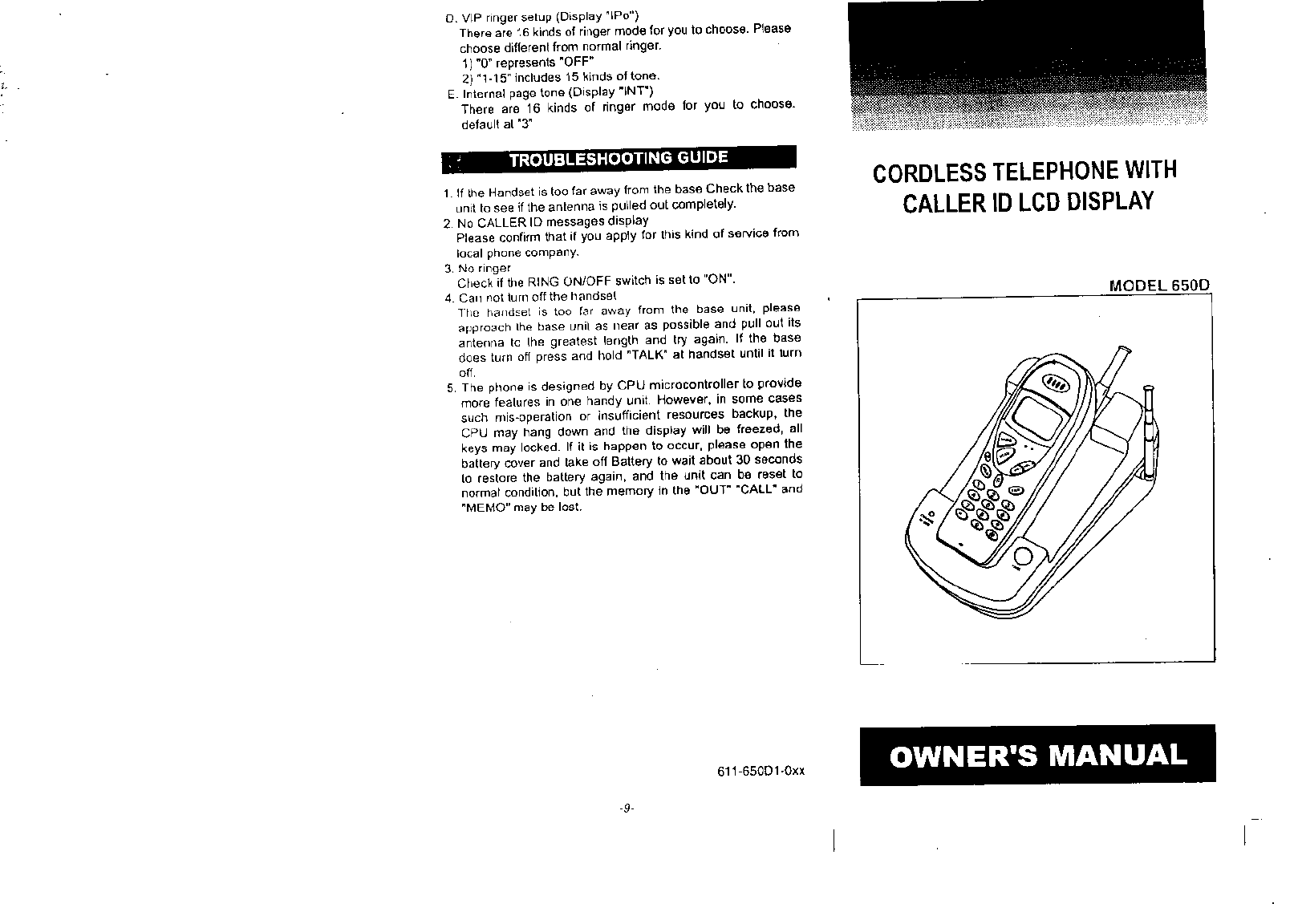 Lelux Electronics 650D 46/49 MHz 10 Channel analog Modulation Cordless Ph User Manual Users manual