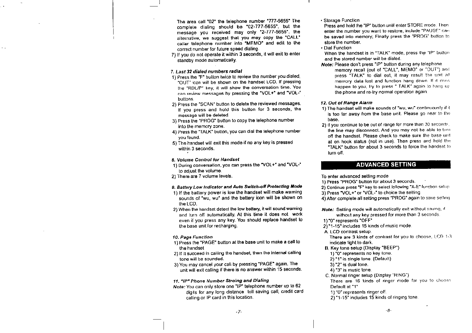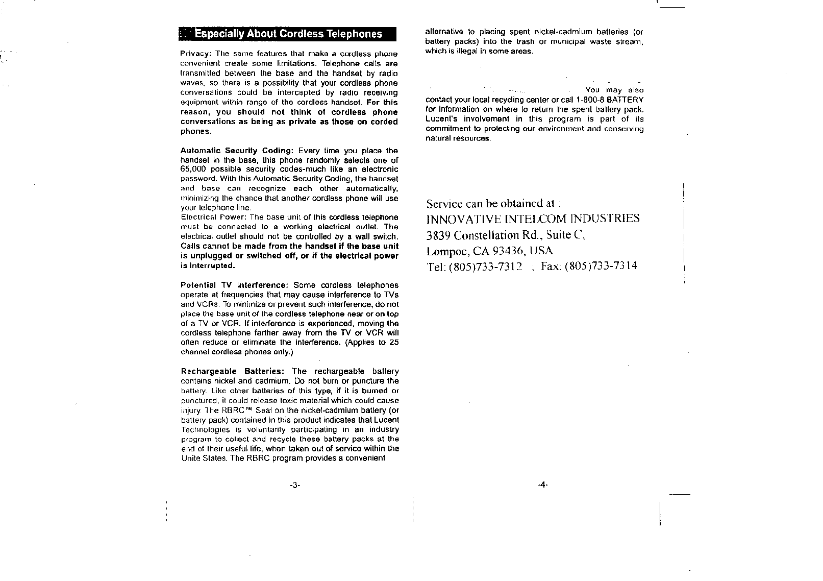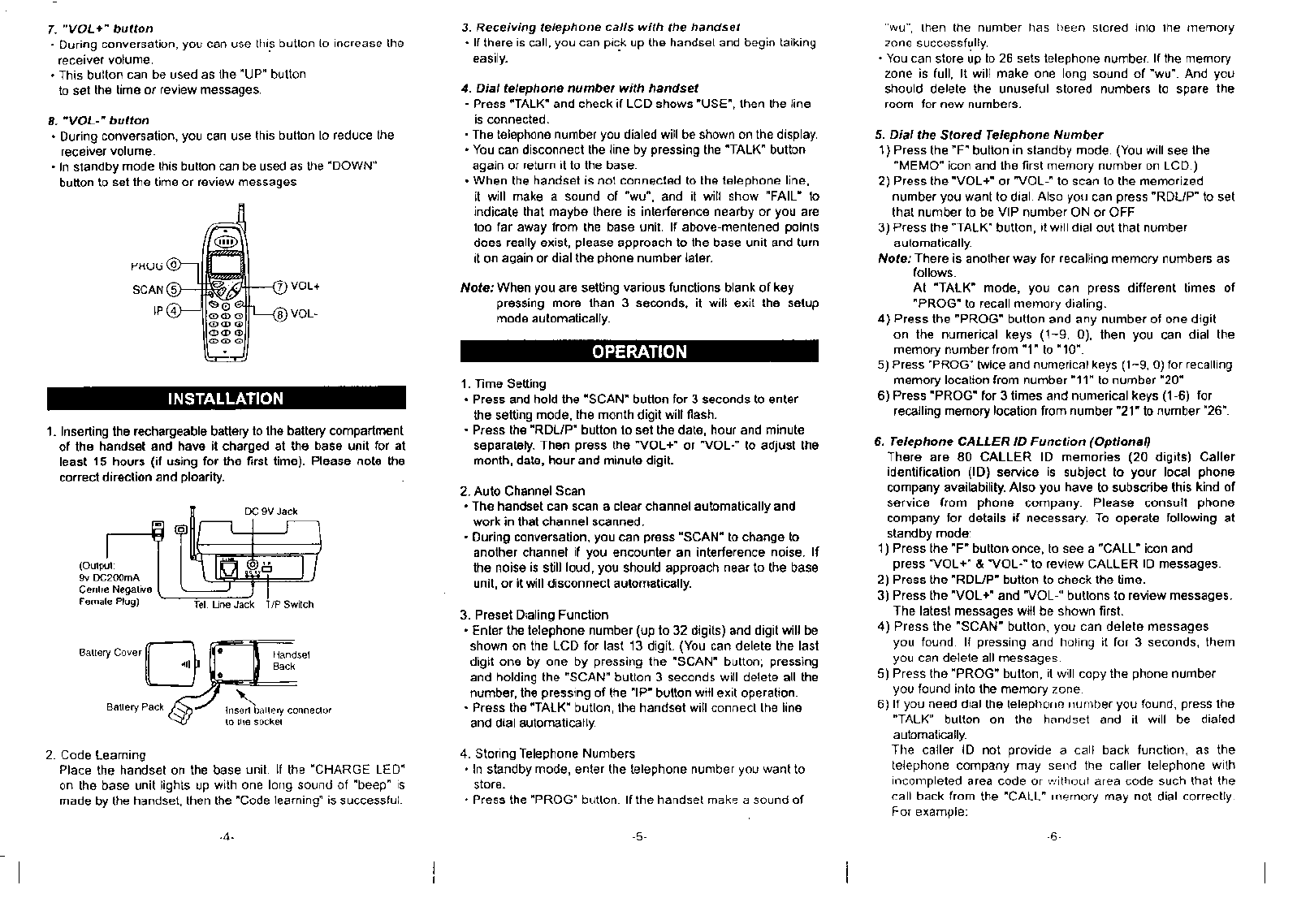 Lelux Electronics Ltd 46/49 MHz 10 Channel analog Modulation Cordless Ph Users manual