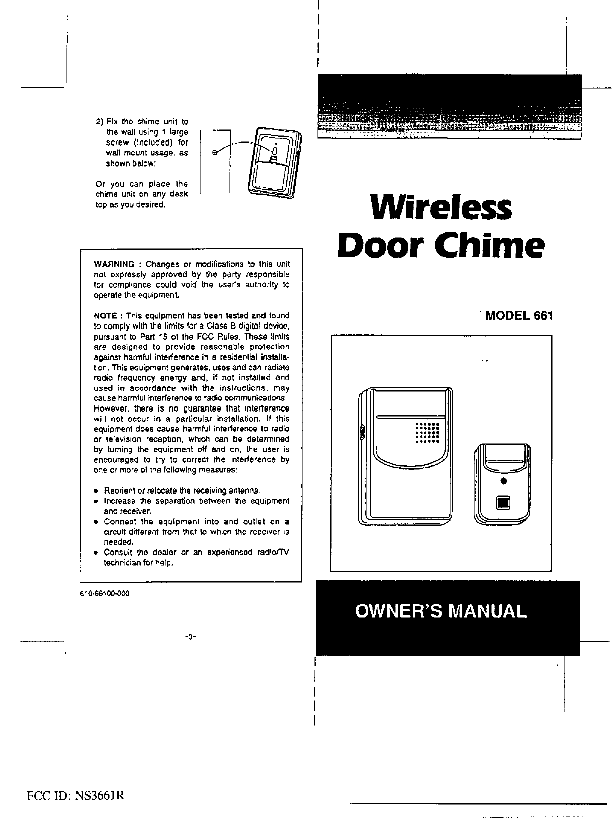 Lelux Electronics 661R Door Chime Receiver User Manual 46556