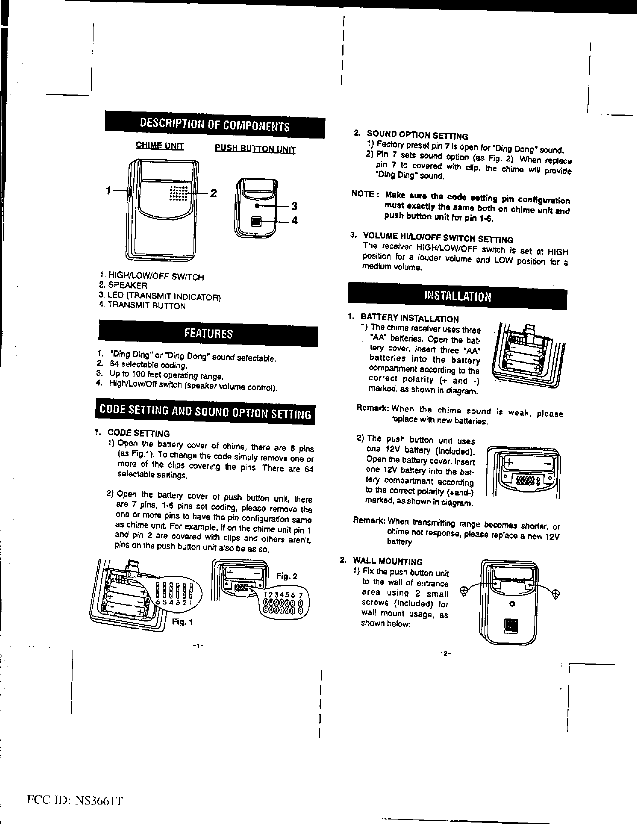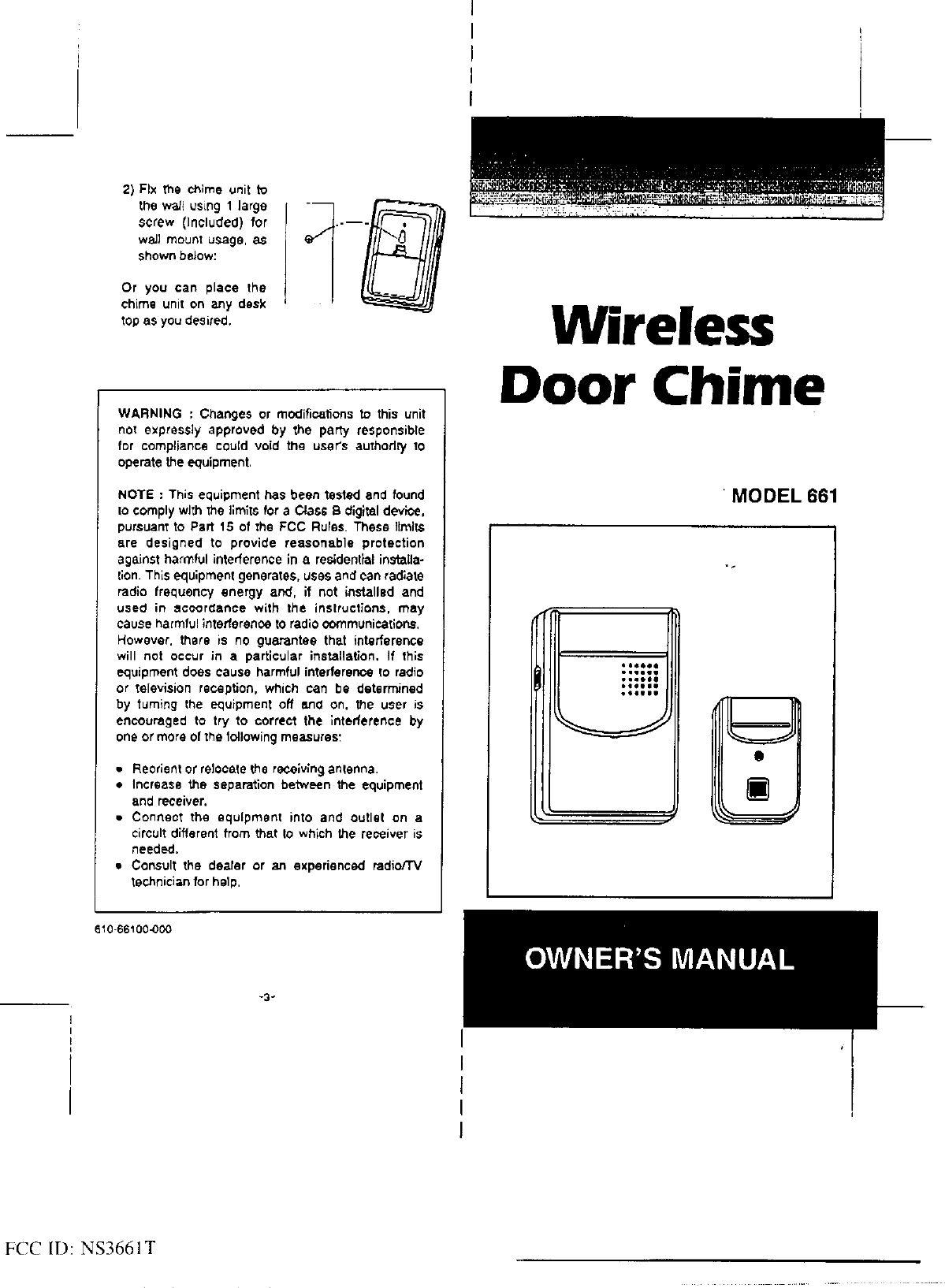 Lelux Electronics 661T Door Chime Transmitter User Manual 50085