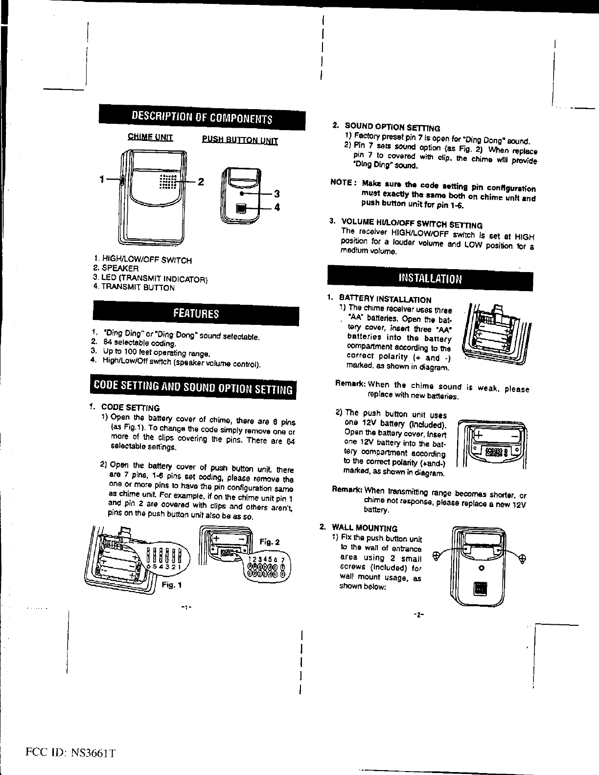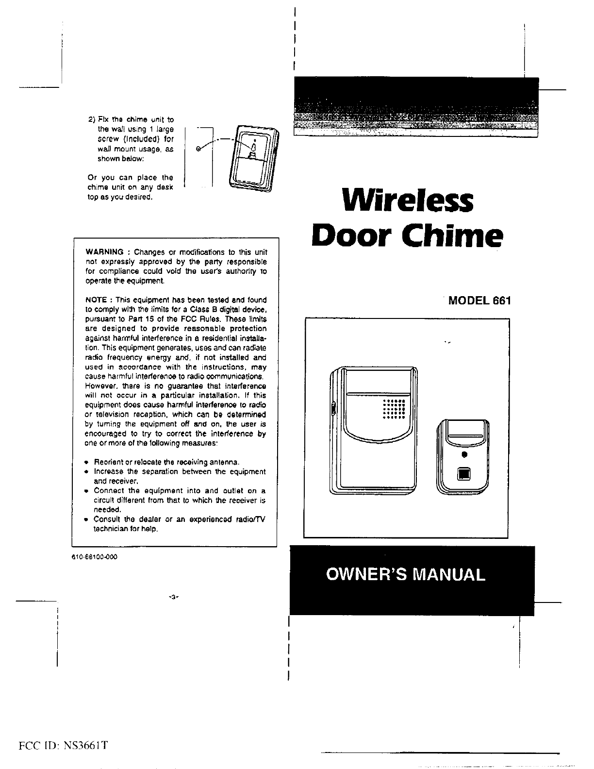 Lelux Electronics 661T Door Chime Transmitter User Manual 50085