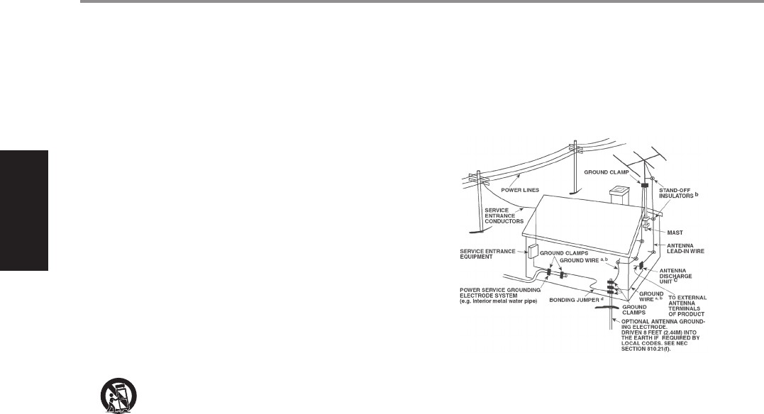 14. Mise à la terre d’une Antenne Extérieure - Si l’appareil est relié à une antenne