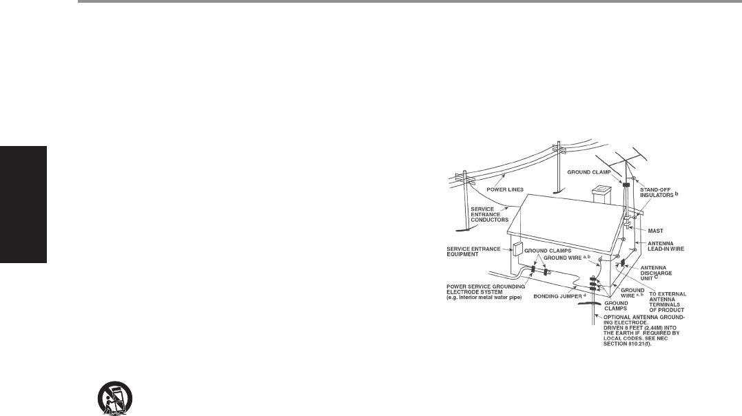 14. Mise à la terre d’une Antenne Extérieure - Si l’appareil est relié à une antenne
