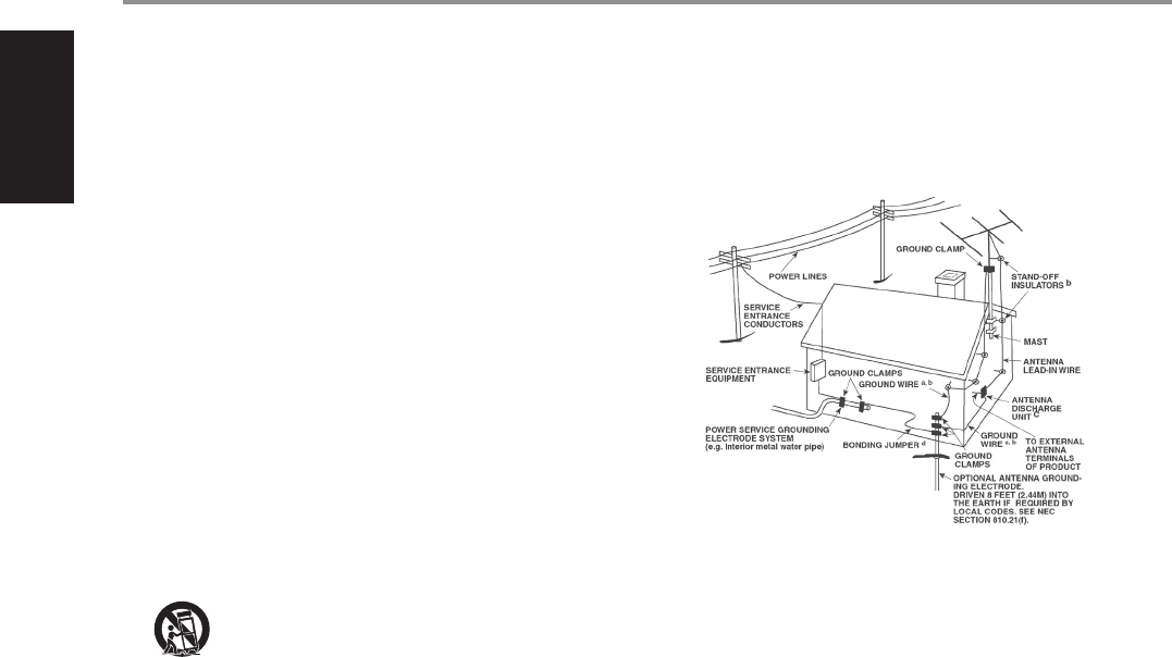 connected to the product, be sure the antenna or cable system is grounded so