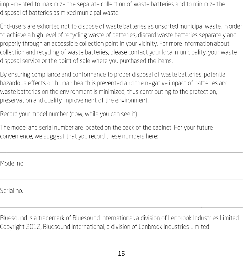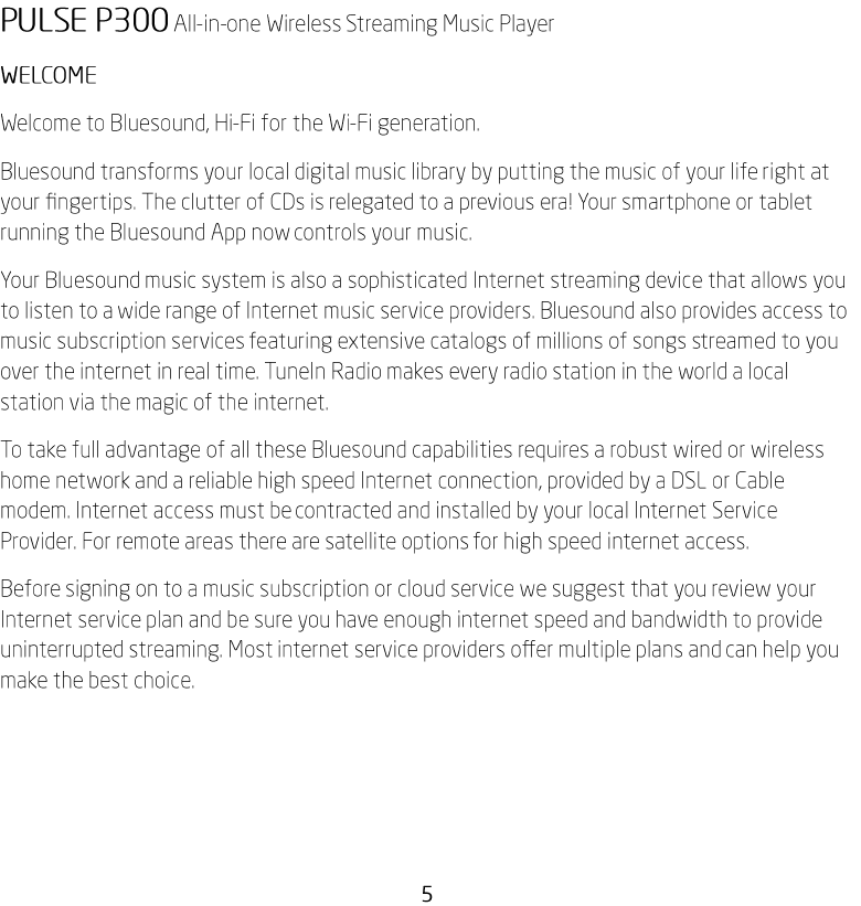 Lenbrook P300WSMS Wireless Streaming Music System User Manual