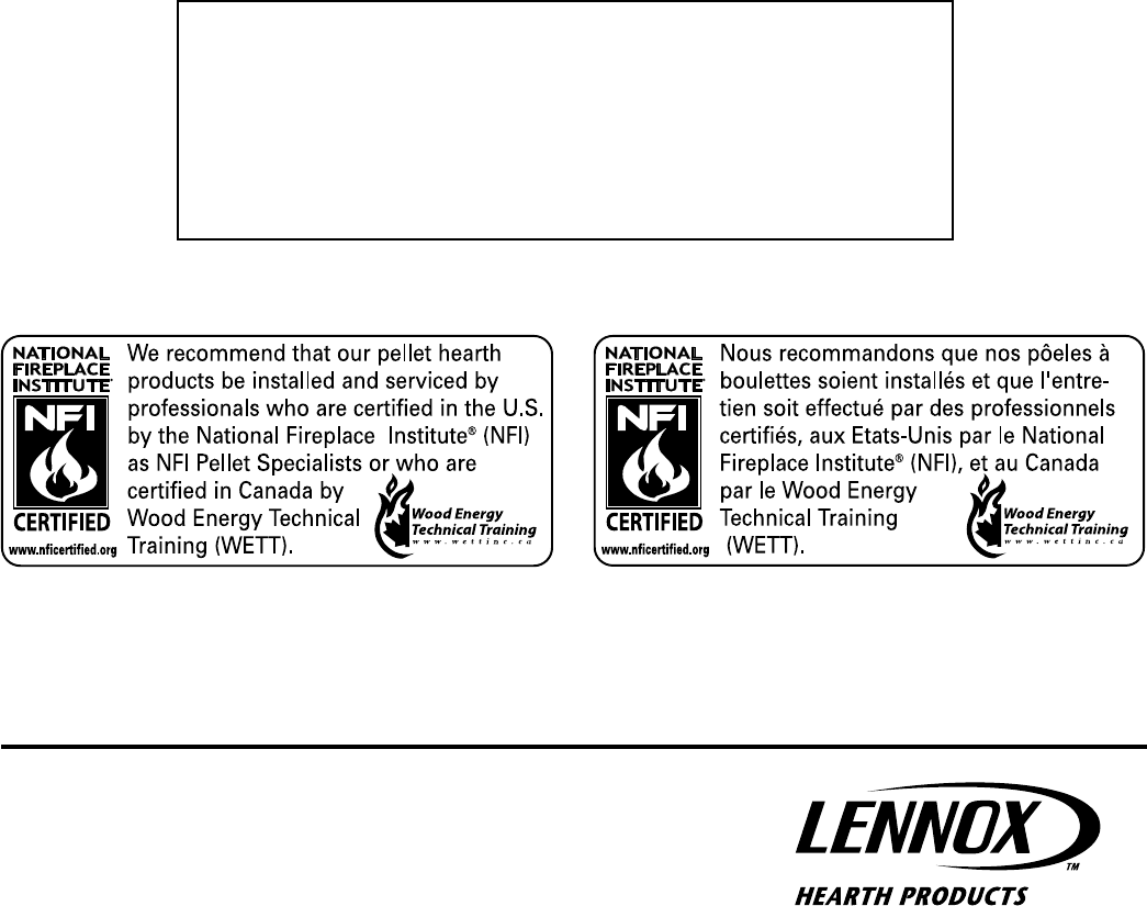 Lennox™ pellet-burning appliances are designed for use as a supple-