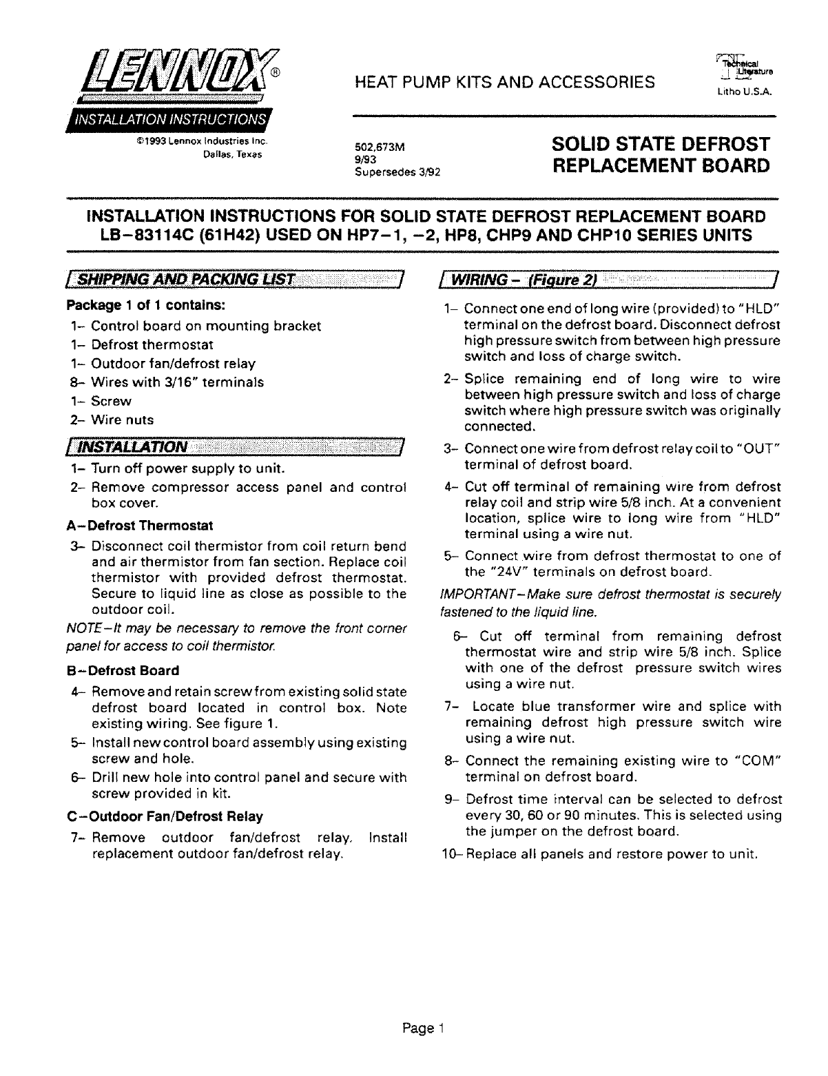 ©1993 LennoxIndustries Inc. 502,673M