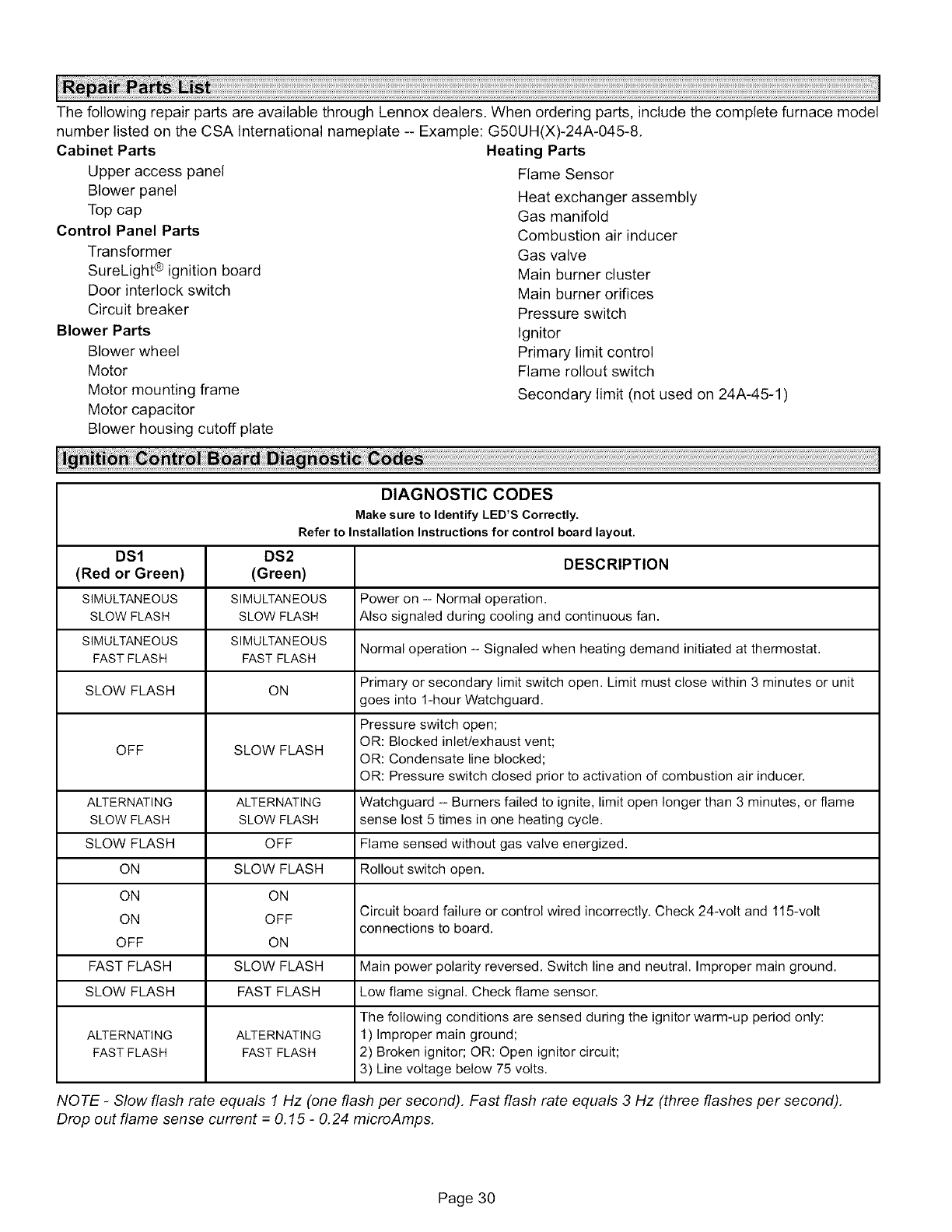 Ignition Control Board Diagnostic Codes ........... 30