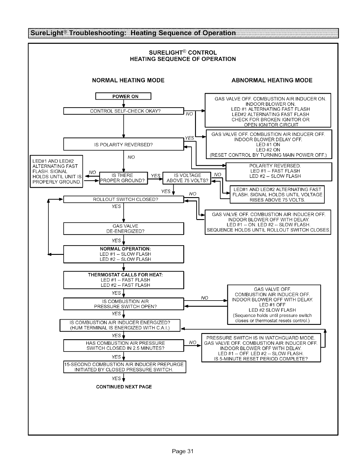 •NO I GAS VALVE OFF COMBUSTION AIR INDUCER OFF