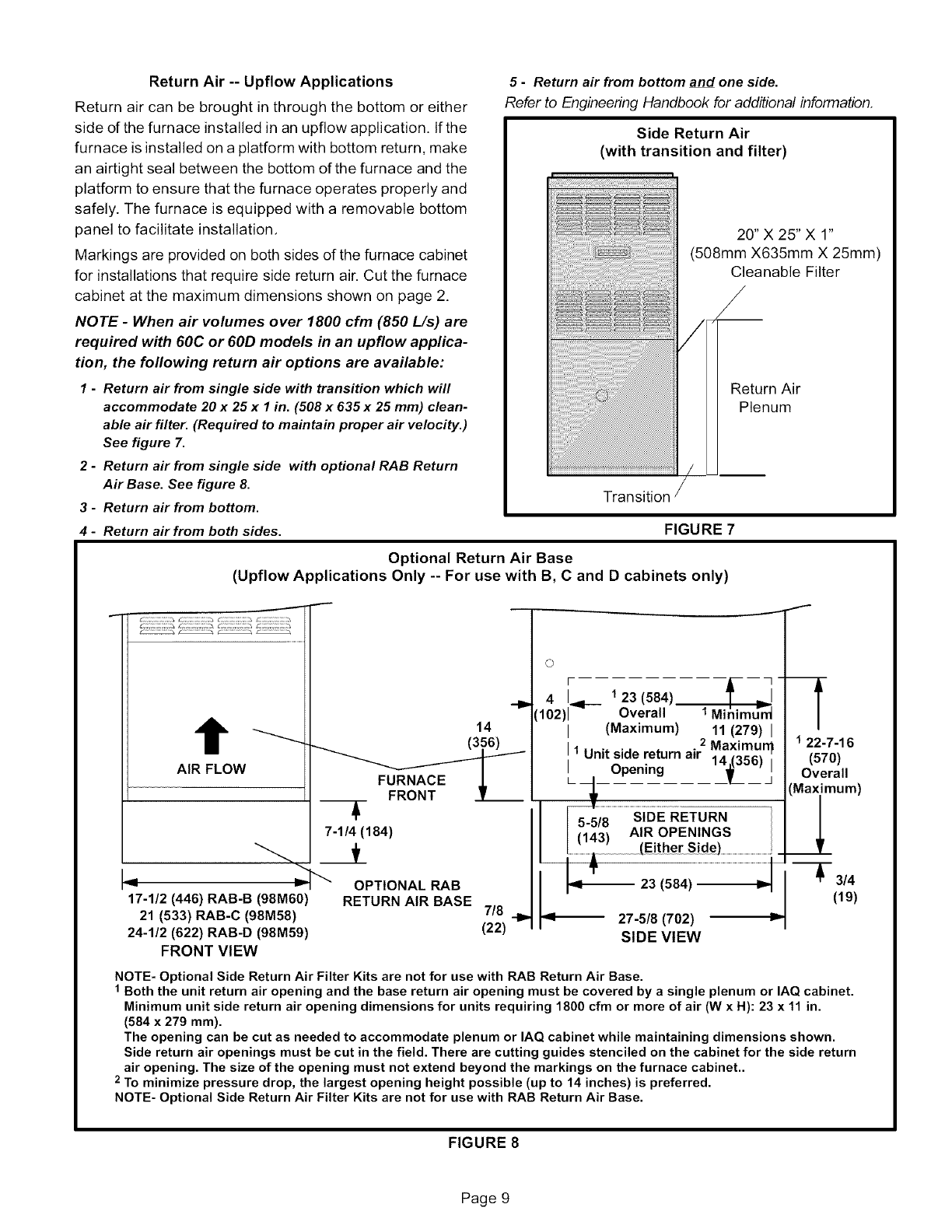 1 NOTE -60C and 60D size units that require air volumes