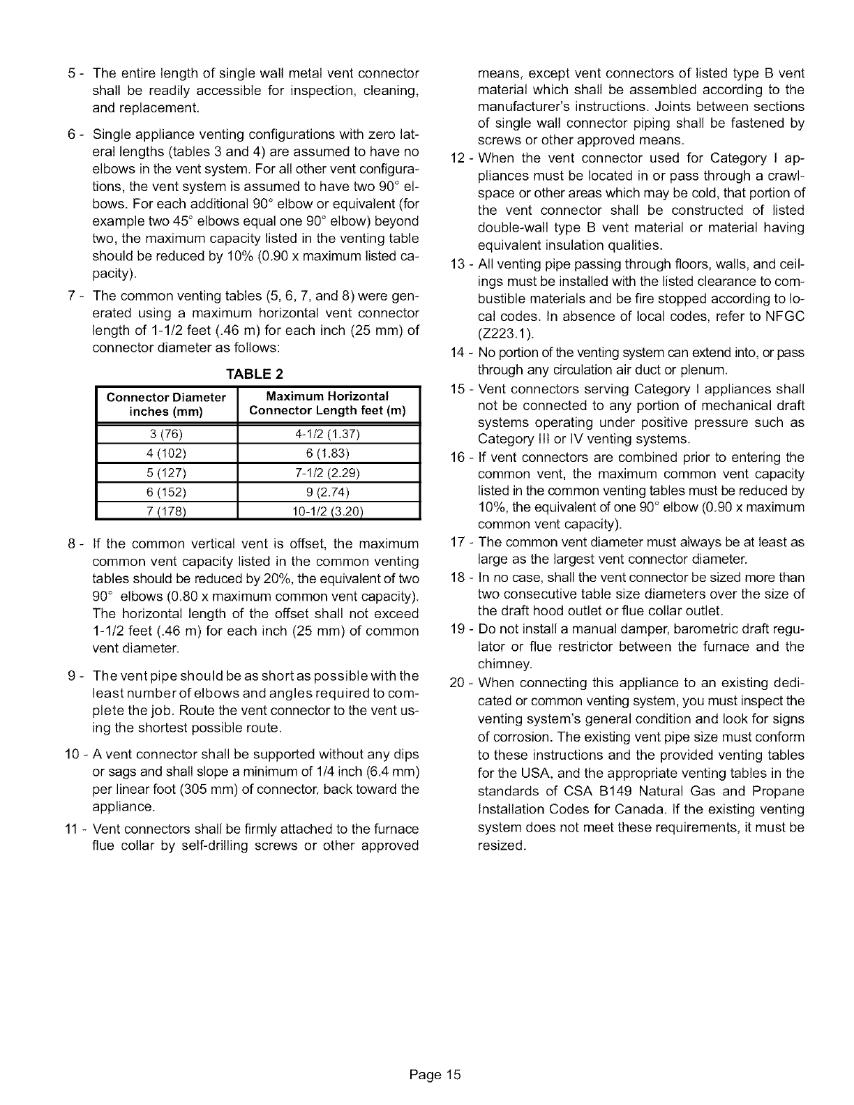 2 Flue outlet may be horizontal but furnace must be