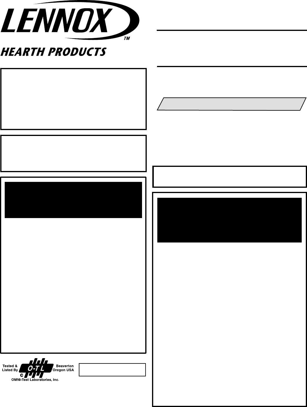 Printed in U.S.A. © 2005 by LENNOX HEARTH PRODUCTS
