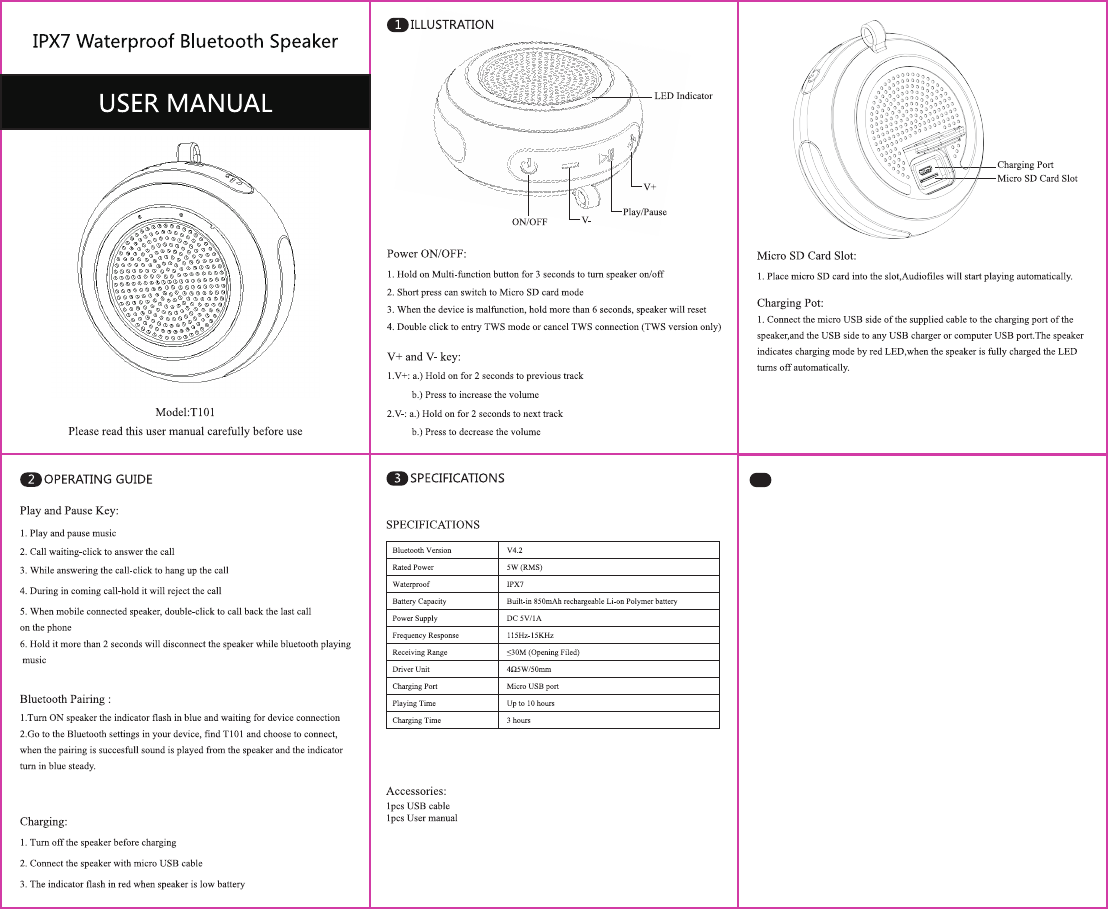 Lenodell Technology T101 IPX7 waterproof bluetooth speaker User Manual