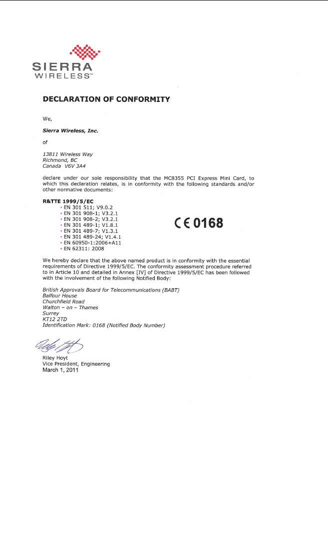 SierraWirelessInc.,herebydeclaresthatthisMC8355PCIExpressMiniCardis
