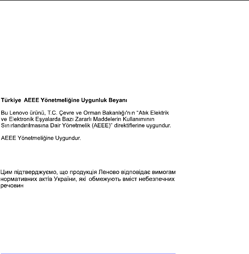 The Lenovo product meets the requirements of the Republic of Turkey Directive on the Restriction of the Use