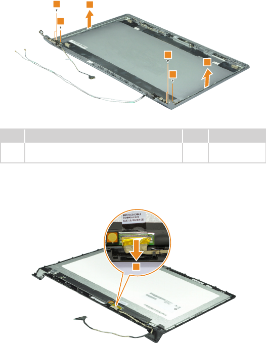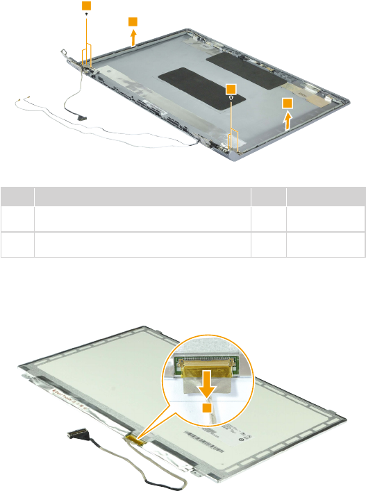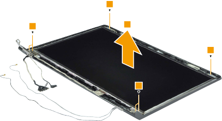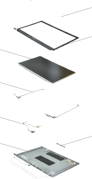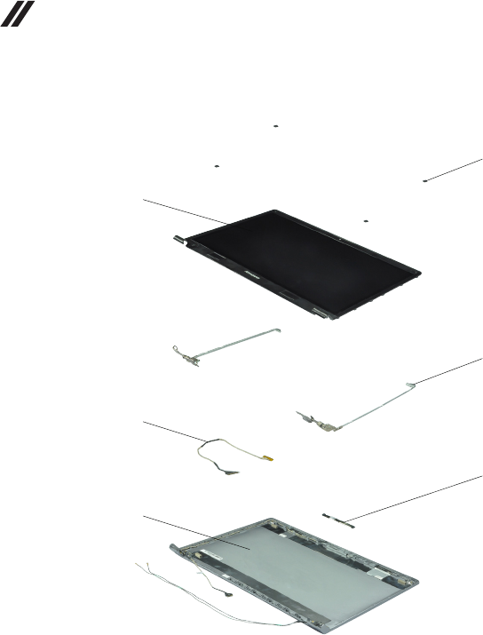 - 1160 LCD panel, LCD cable, antenna assembly, and hinges (B5400/M5400)