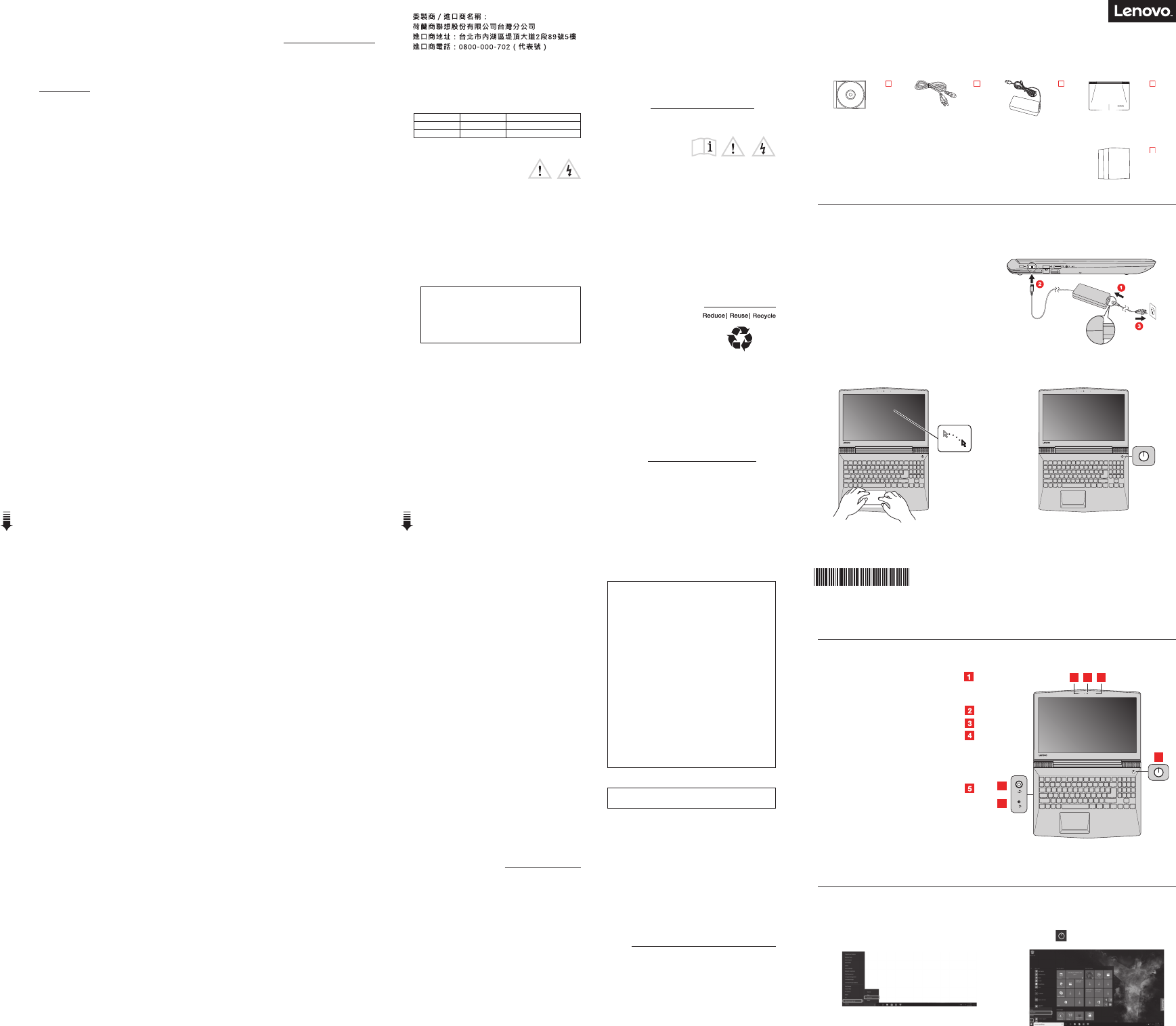 Lenovo Legion Y520 15Ikbn Swsg He 201701 01 User Manual (Hebrew) Safety, Warranty, And Setup Guide Laptop (Lenovo) Type 80WK