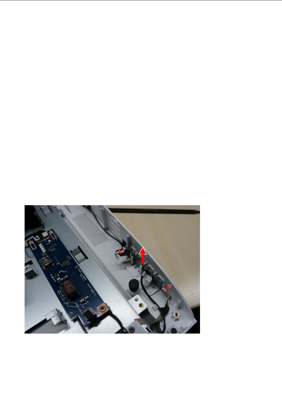 Step11.Disconnectthedatacablefromthepowerswitchboard,thenliftupthepowerswitchboard.