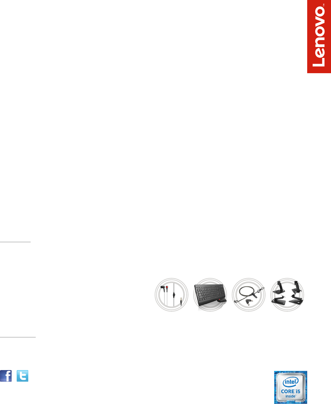 ©2015 Lenovo. All rights reserved. Availability: Offers, prices, specifications and availability may change without notice. Lenovo is not responsible for photographic or typographic errors. Warranty: For a copy of applicable warranties, write