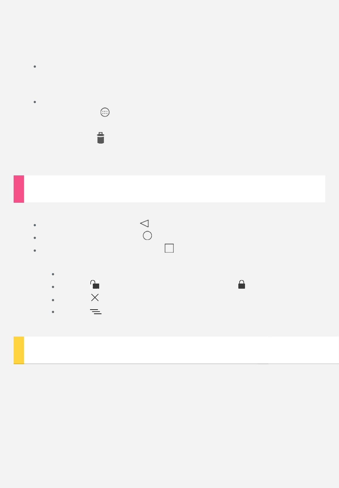 Butonul Recente: Atingeţi uşor pentru a vizualiza aplicaţiile recente.
