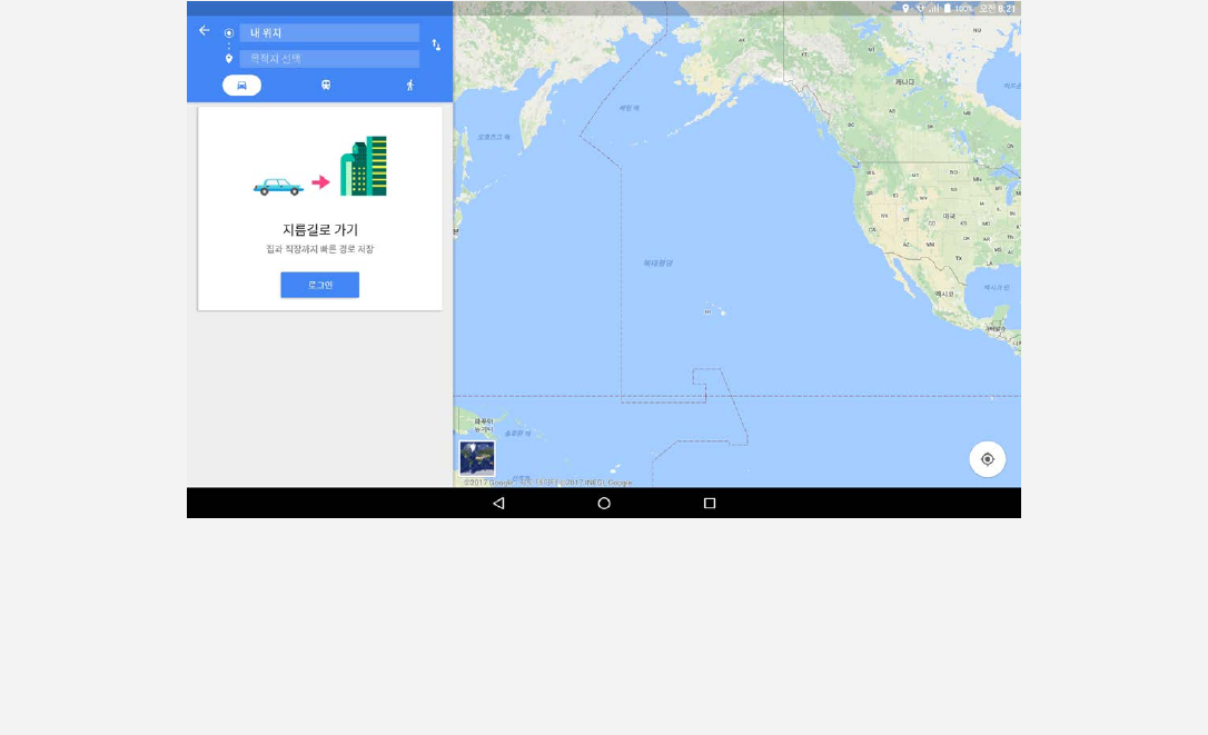 첫 번째 홈 화면에는 Google 검색 막대 및 몇 가지 유용한 위젯이 있습니다.