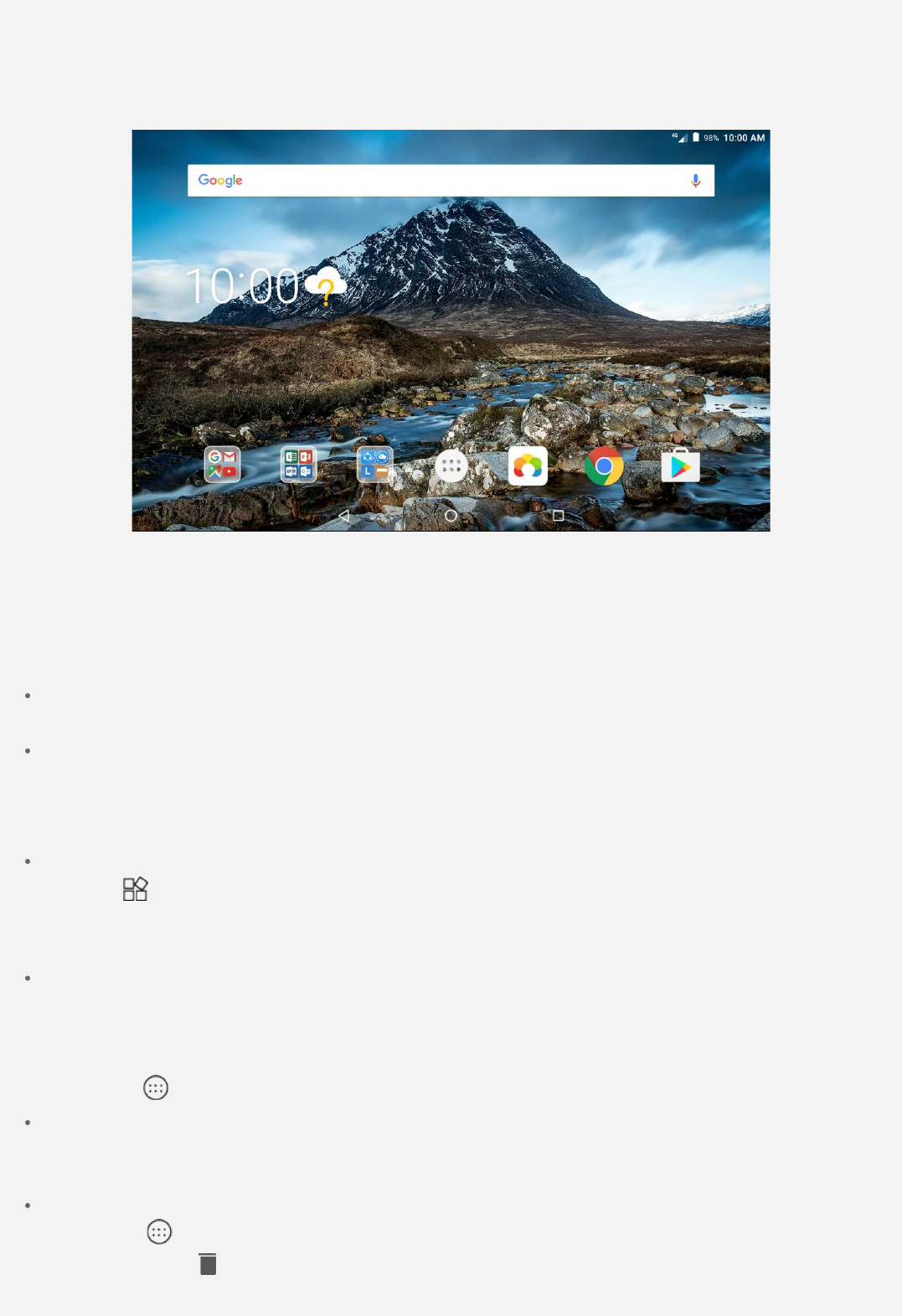 comodità, la schermata iniziale è già impostata con le app e i widget più utili.