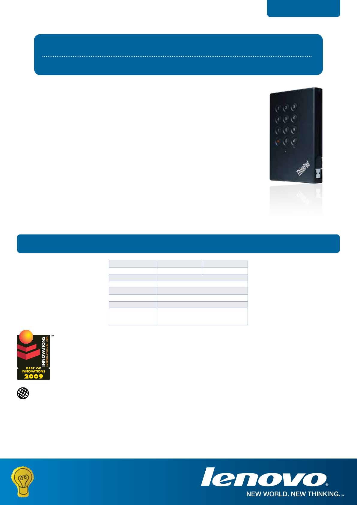 THINKPAD® USB PORTABLE SECURE HARD DISK DRIVE SPECIFICATIONS