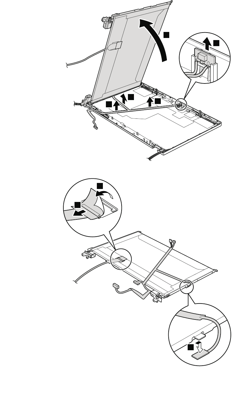 - 2040 LCD cable, camera cable, LCD panel, and hinges