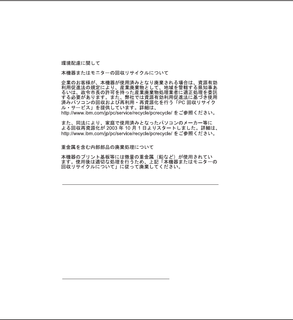 Lenovo Web site at www.ibm.com/jp/pc/service/recycle/ pcrecycle/. Pursuant to the Law for