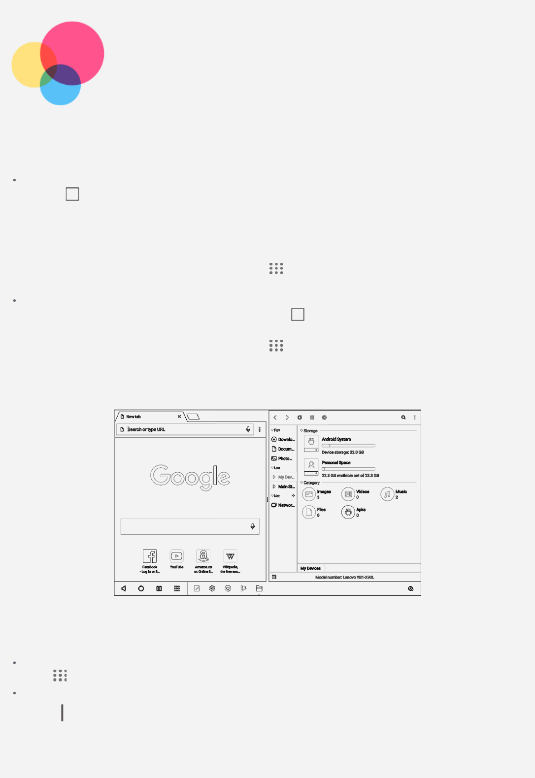 User Manual: Lenovo Lenovo Yoga Book Android N Ug Es Us20171011 (Spanish for Latin America) User Guide - YOGA Book with Android N (Lenovo YB1-X90F/L) YOGA Book (YB1-X91F, YB1-X91L, YB1-X90F, YB1-X90L) - Type ZA16 ZA16 for Lenovo YB1-X91L