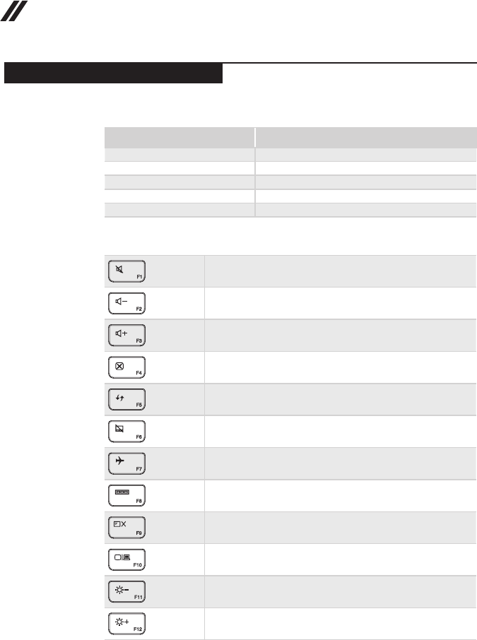 - Function key combinations