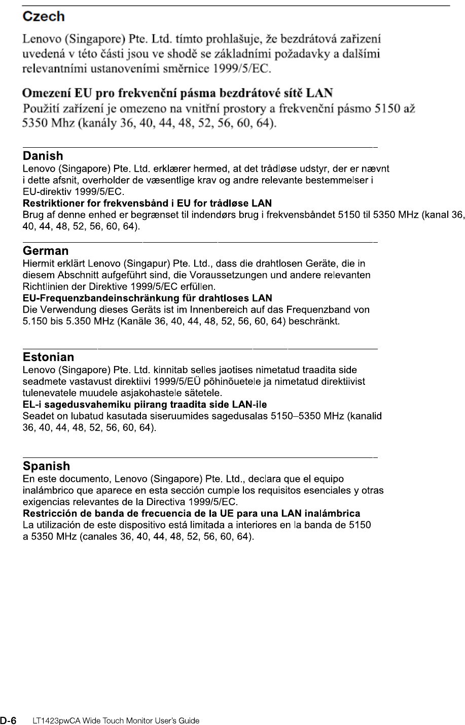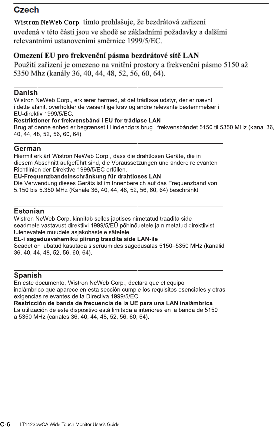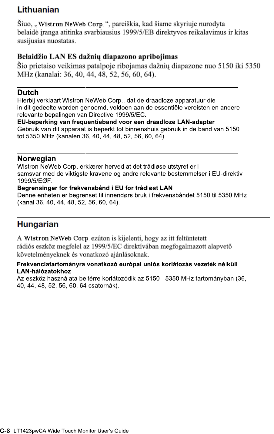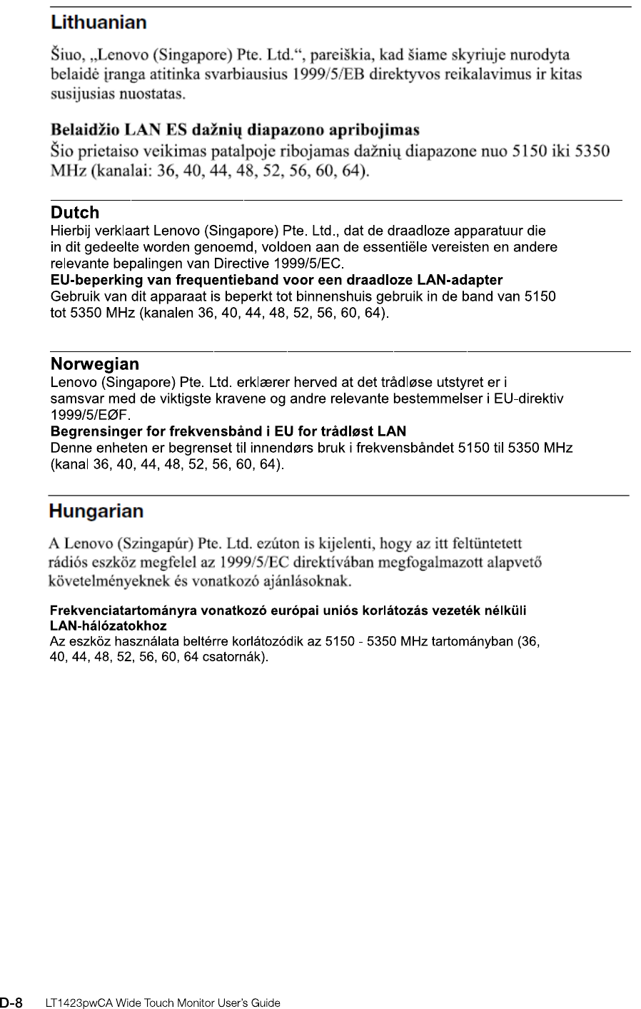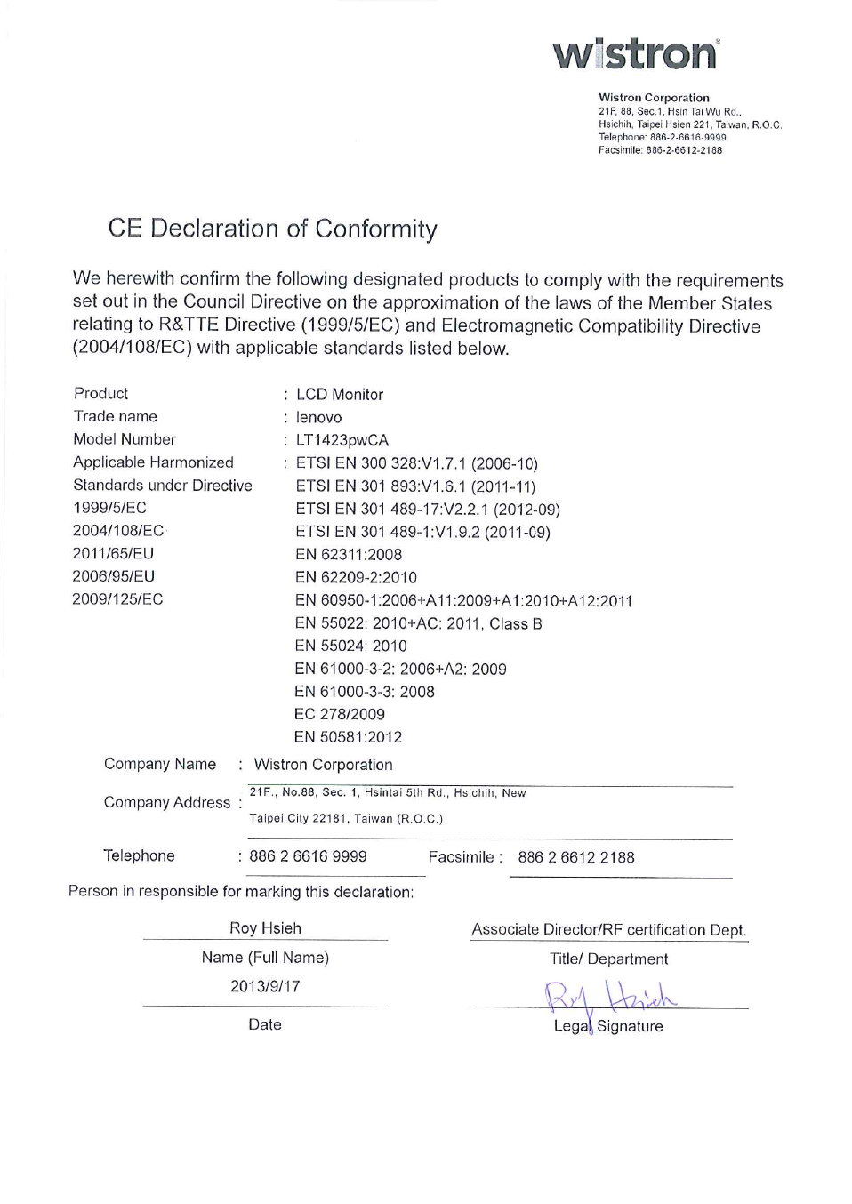 EU Declaration of Conformity – LT1423pwCA Monitor