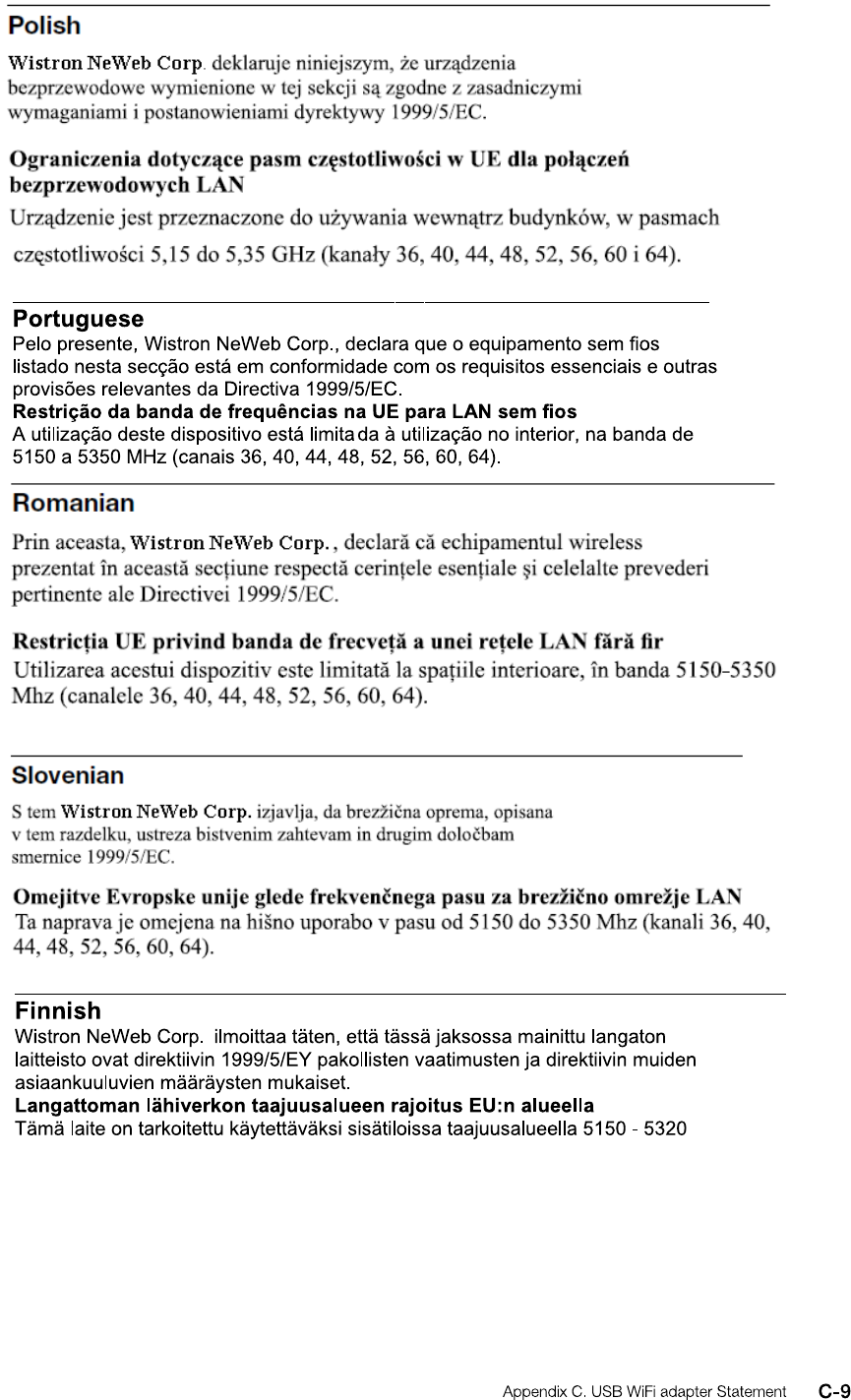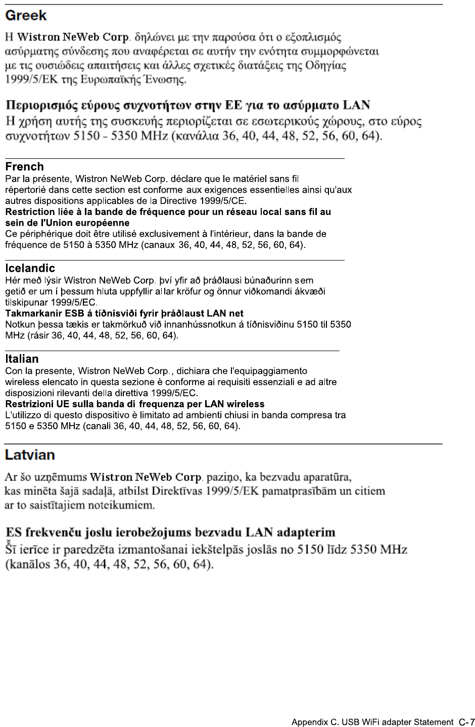 Appendix C. USB WiFi adapter Statement ................................................ C-1