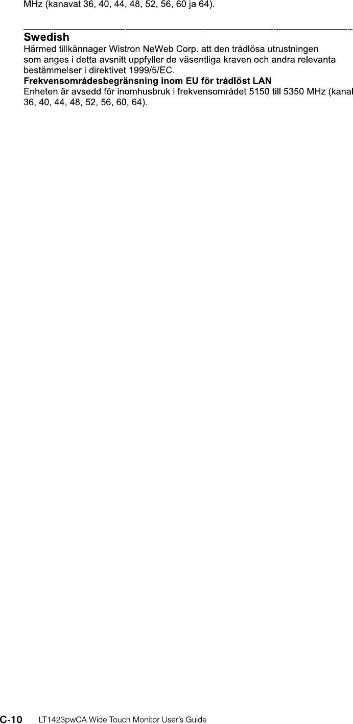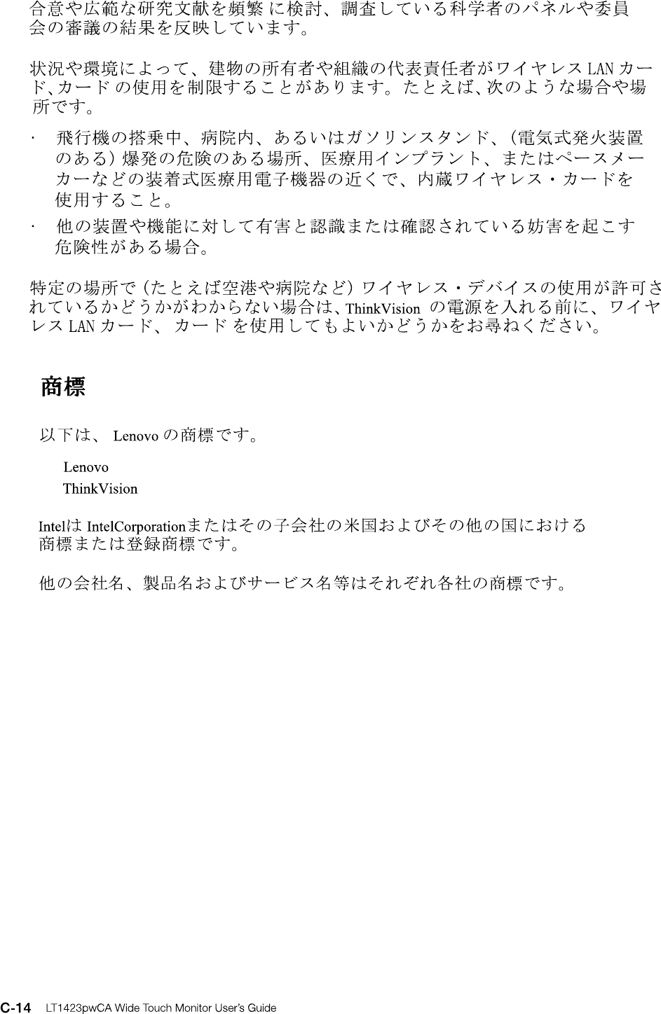 C-4    LT1423pwCA Wide Touch Monitor User’s Guide