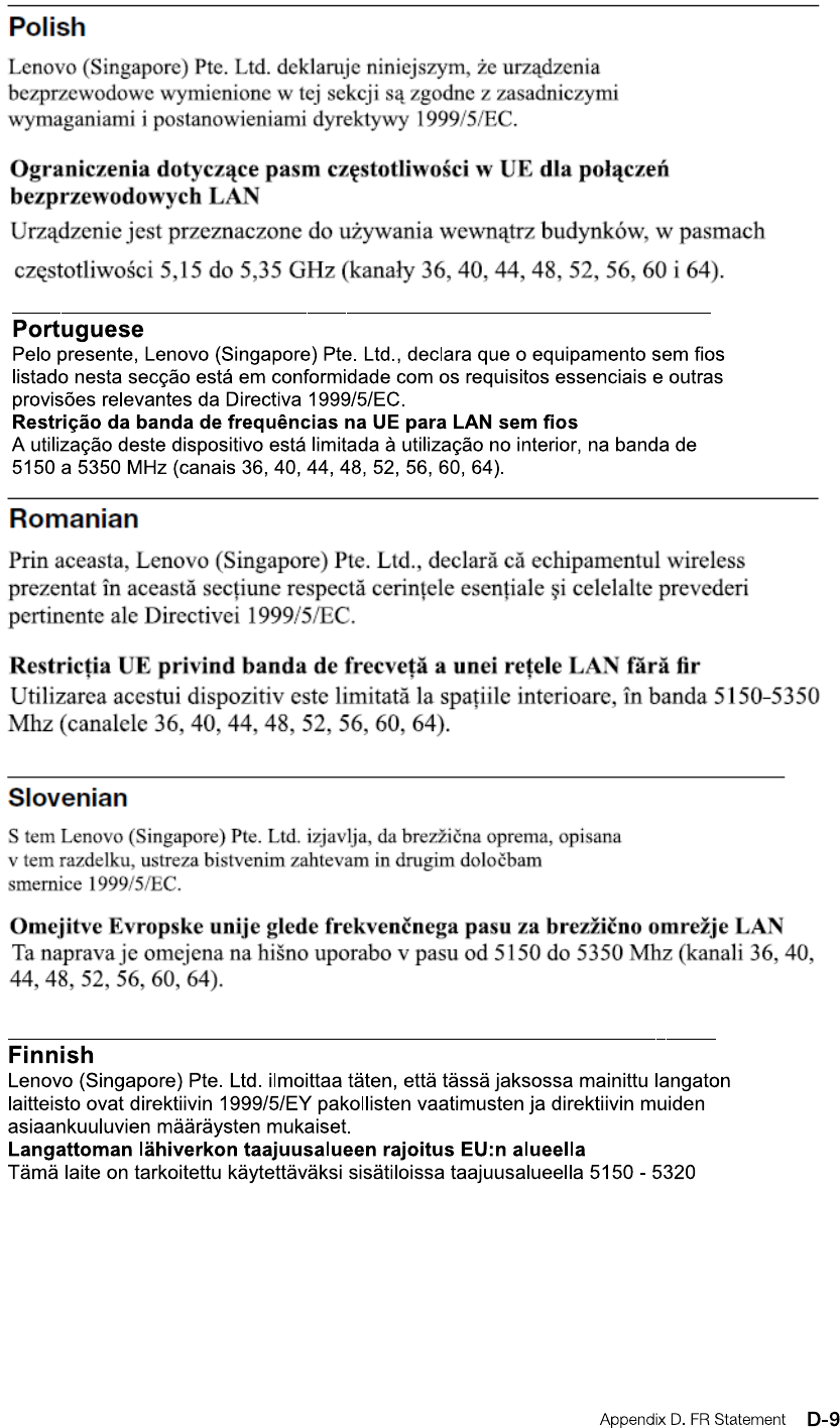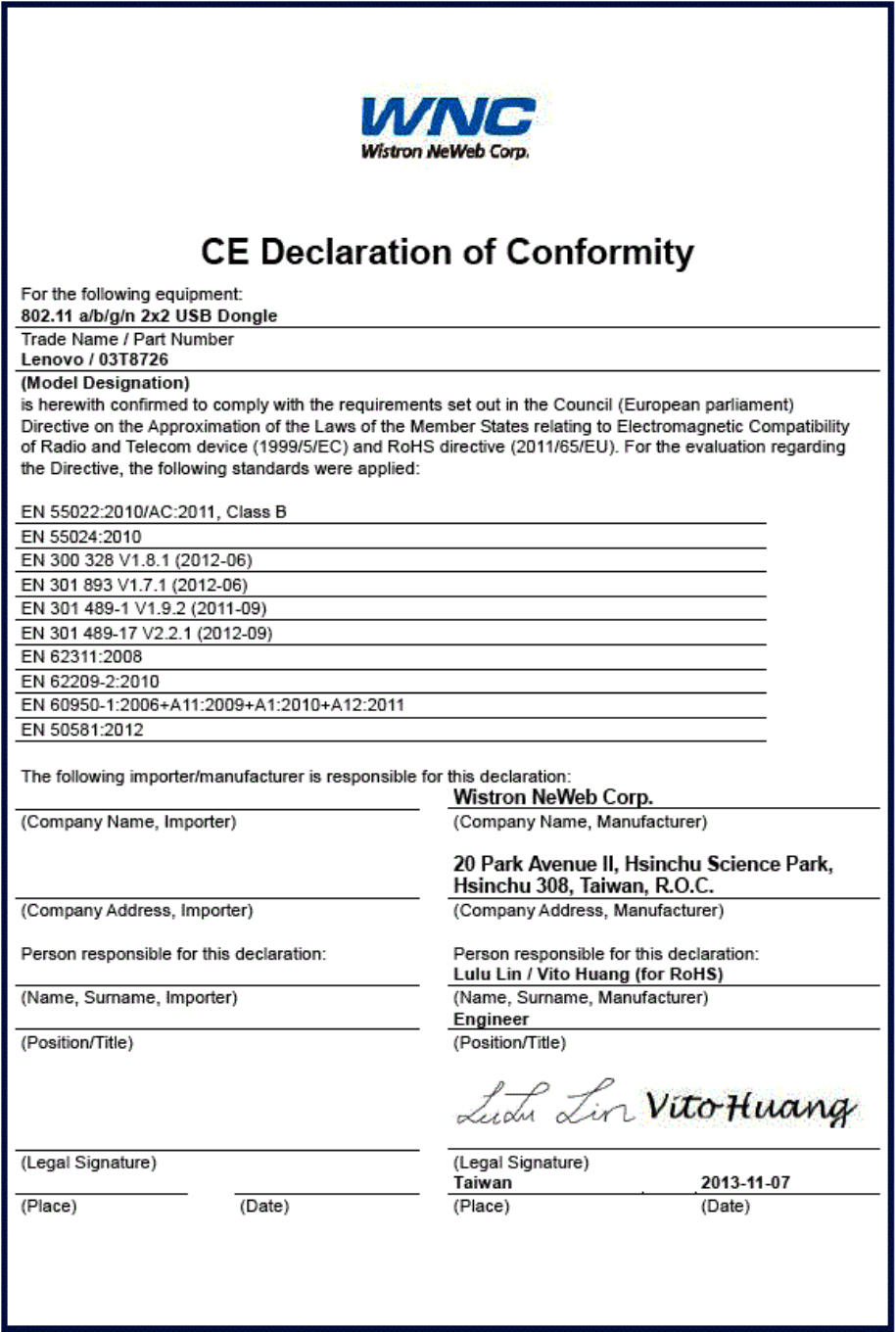 Hereby, Lenovo (Singapore) Pte. Ltd., declares that the wireless equipment listed