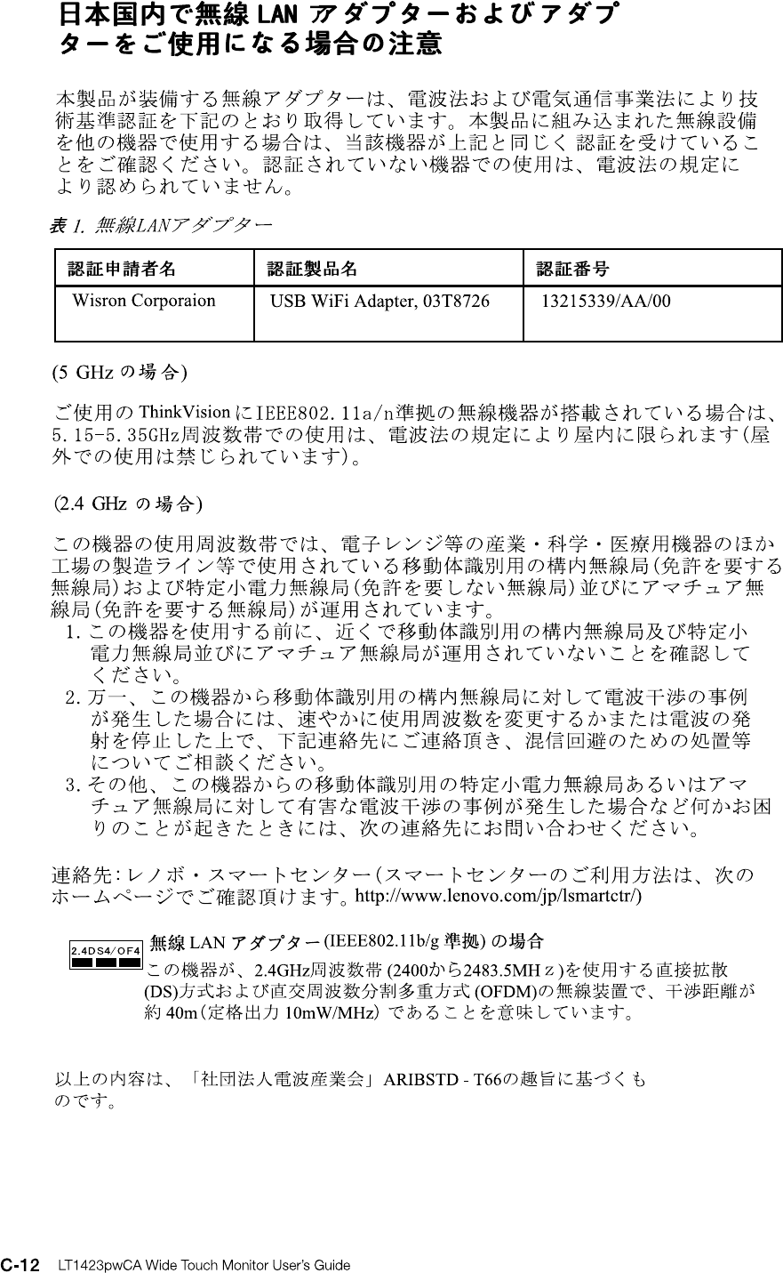 User Manual: Lenovo Lt1423P Wireless Ug En (English) User guide for ThinkVision LT1423p (Wireless) (Machine Type 60AC) ThinkVision LT1423p 13.3-inch IPS LED Backlit LCD Wireless Touch Monitor with pen ThinkVision LT1423p 13.3-inch IPS LED Backlit LCD Wireless Touch Monitor with pen