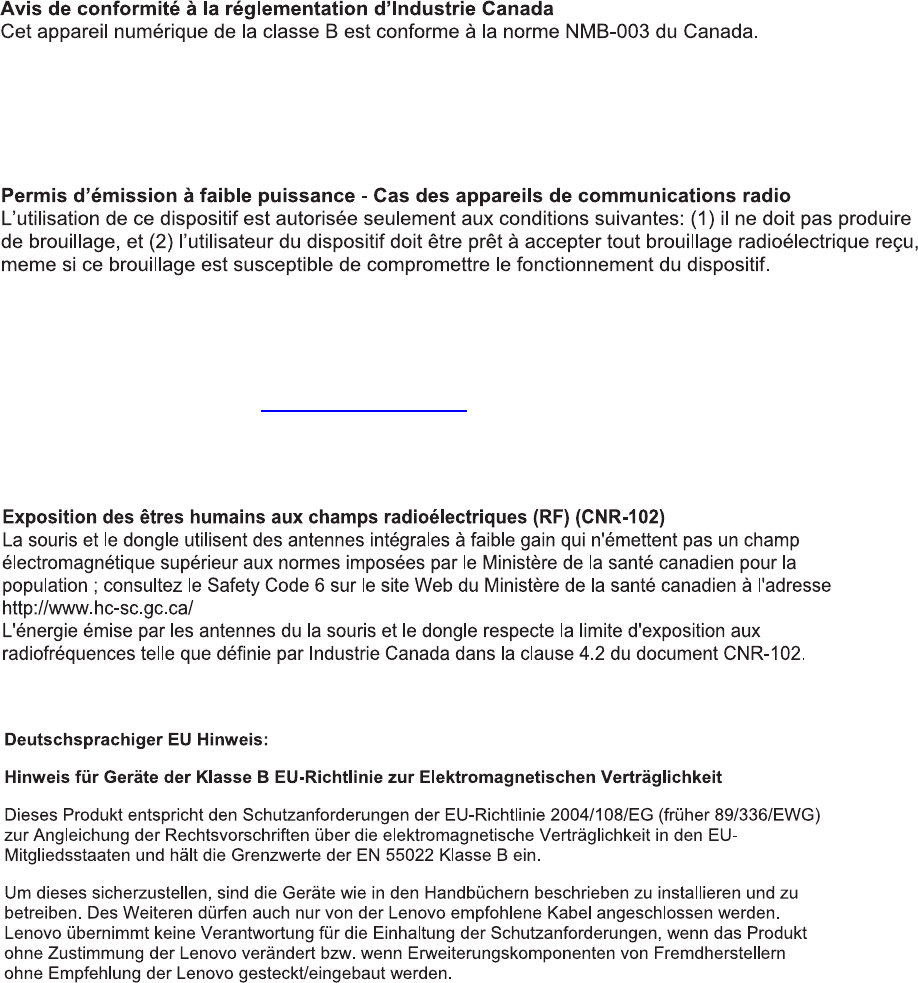 électromagnétique.Lenovo décline toute responsabilité en cas de non-respect de cette directive résultant