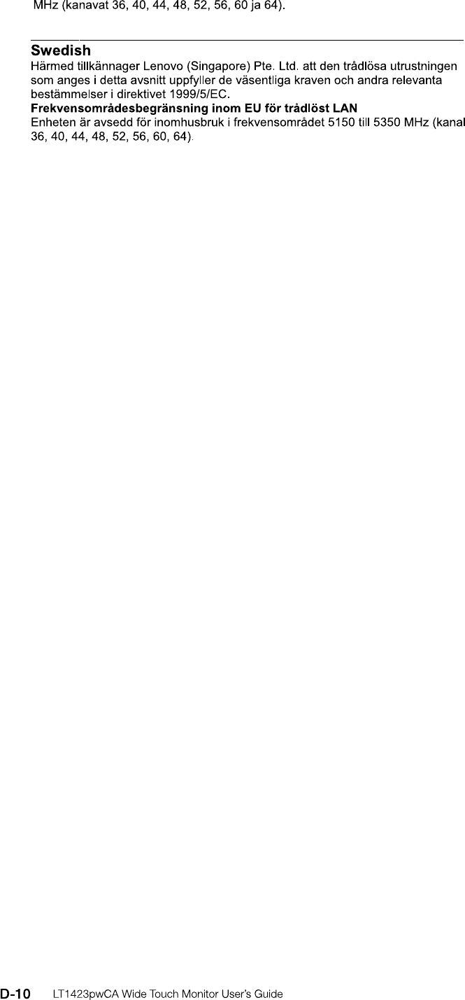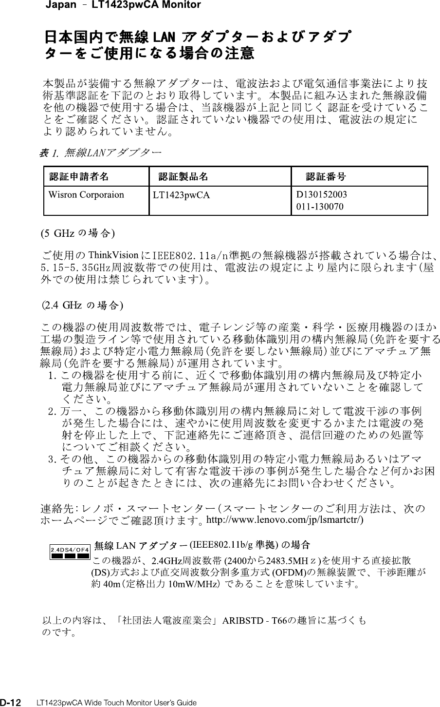 D-2 LT1423pwCA Wide Touch Monitor User’s Guide