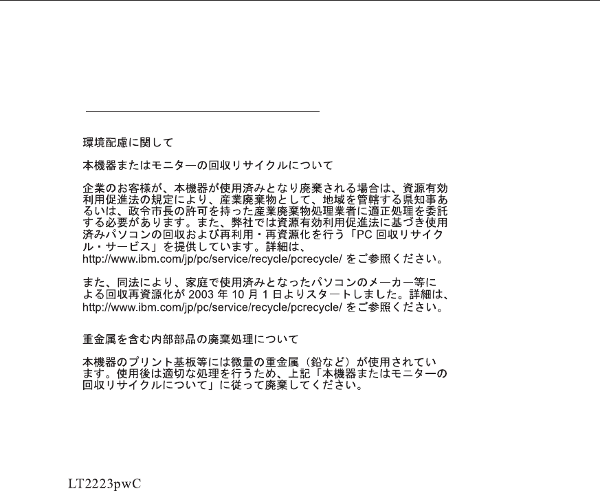 www.ibm.com/jp/pc/service/recycle/pcrecycle/. Pursuant to the Law for Promotion of