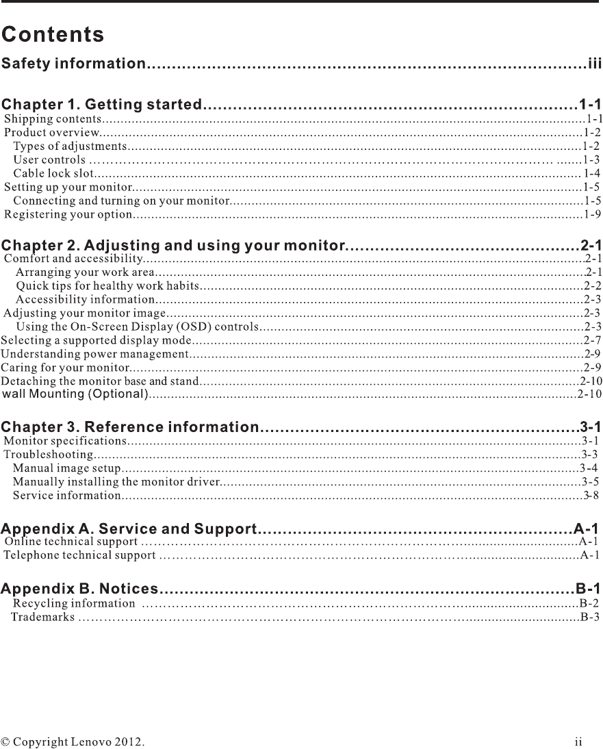 Lenovo Lt2223P Ug En Usereng User Manual (English) Guide For Think Vision (Machine Type 60A1) 21.5in LCD Monitor 60A1