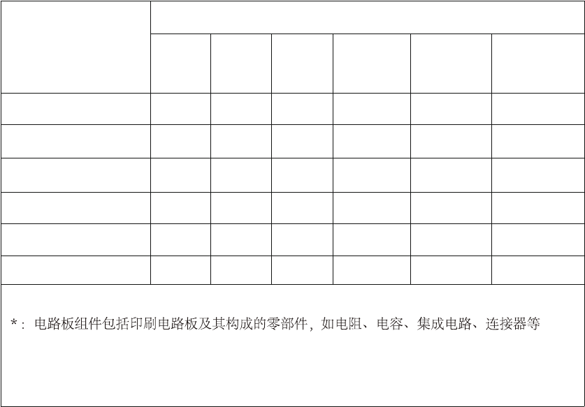 注:表中标记“×”的部件,皆因全球技术发展水平限制而无法实现有害物质的替代。