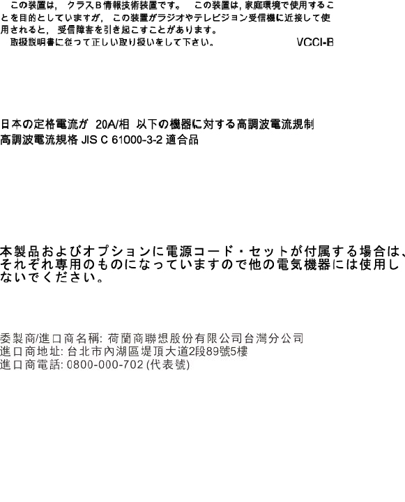 - Japan VCCI Class B compliance statement