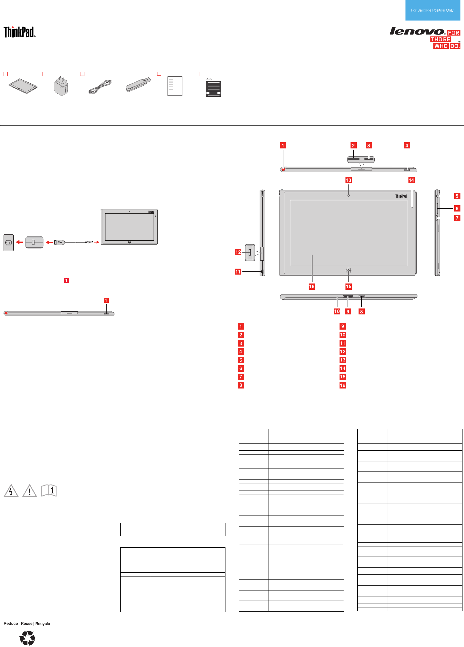 - The ThinkPad Tablet comes with the following self-service CRUs: