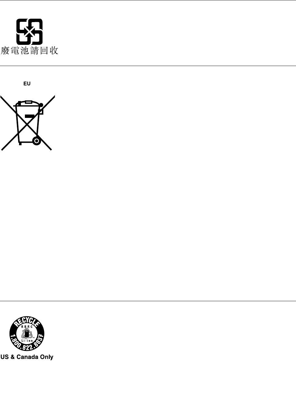 - La información de reciclaje de baterías es sólo para EE. UU. y Canadá