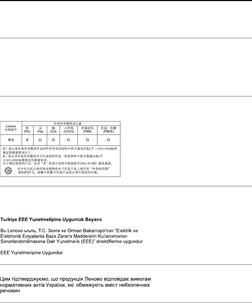 The Lenovo product meets the requirements of the Republic of Turkey Directive on the Restriction of the Use of Certain