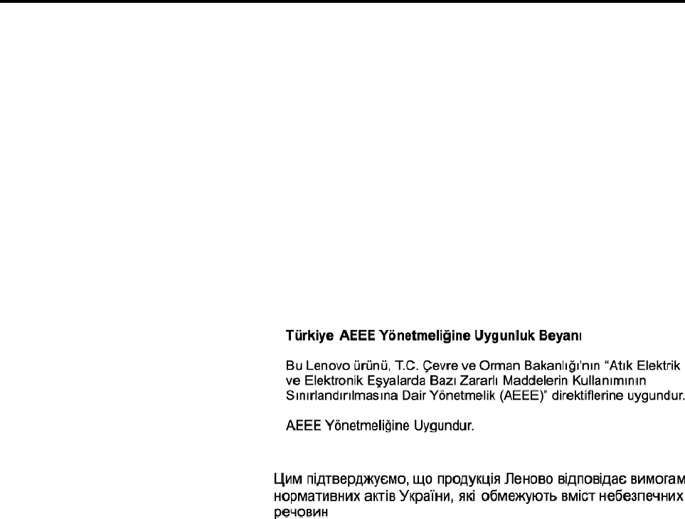 The Lenovo product meets the requirements of the Republic of Turkey Directive on the Restriction of the Use of Certain Hazardous