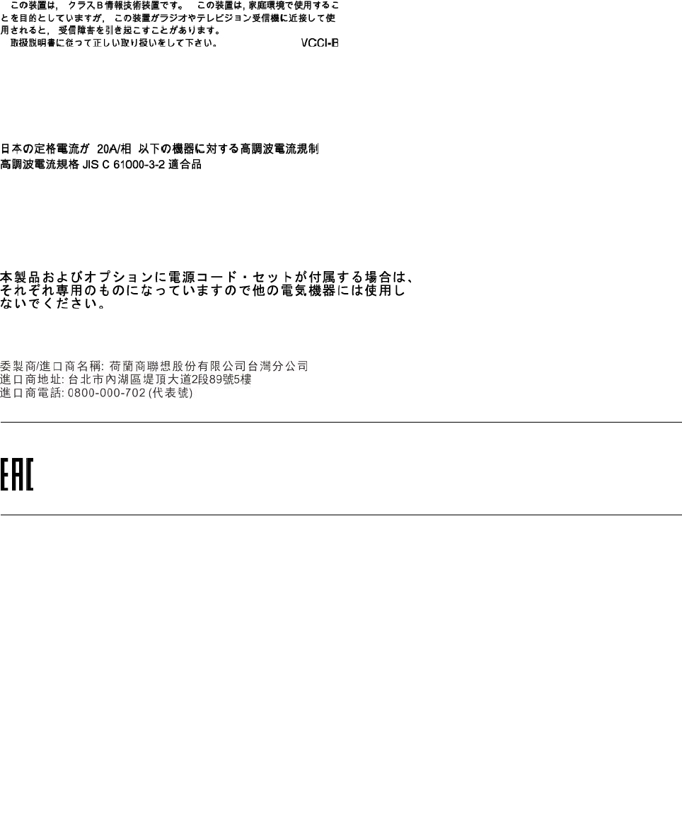 - Avis de conformité aux normes japonaises pour les produits qui se branchent sur l'alimentation principale dont l'intensité mesurée est inférieure ou égale à 20 A par phase