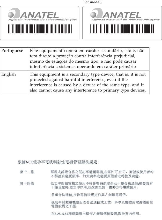 The models: 8260NGW and QCNFA344A are certified by Ratel.